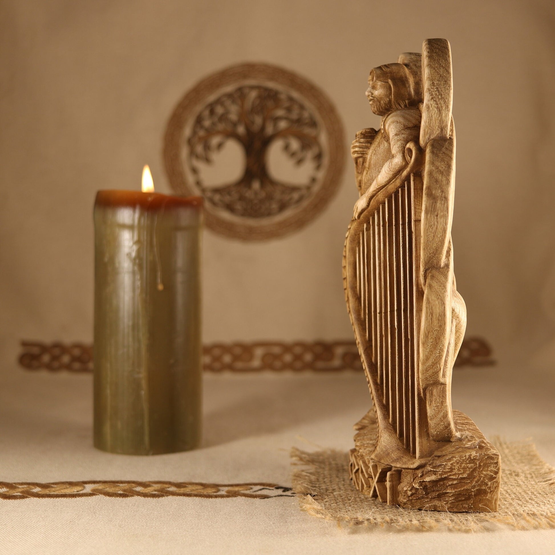 This one-of-a-kind piece is hand-carved from ecological materials and would make a wonderful addition to any home. Bragi, the god of wisdom, eloquence, poetry, and song, is sure to bring a touch of magic to any space.