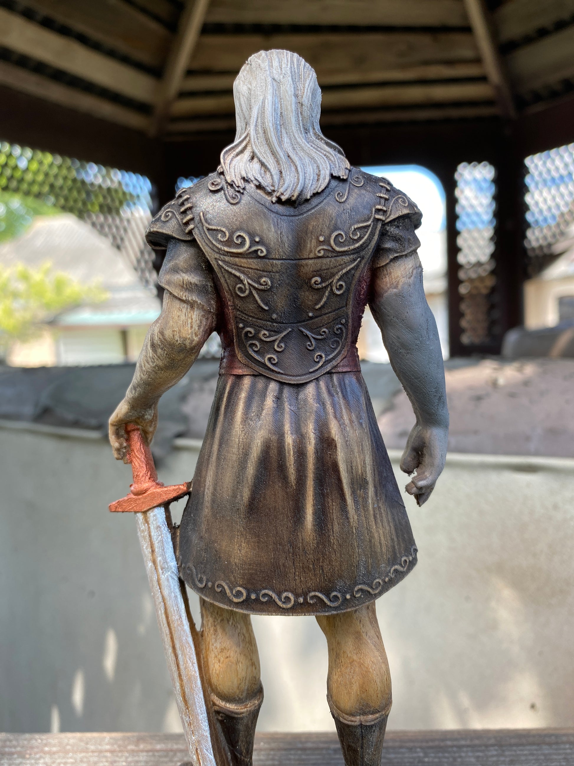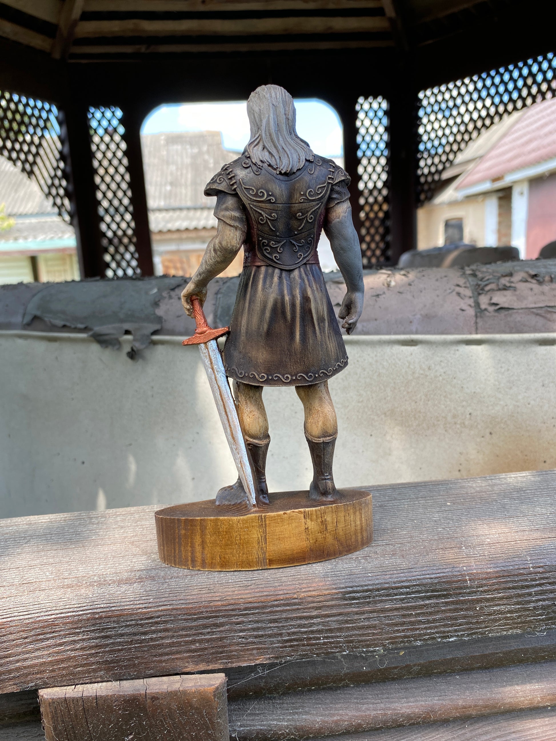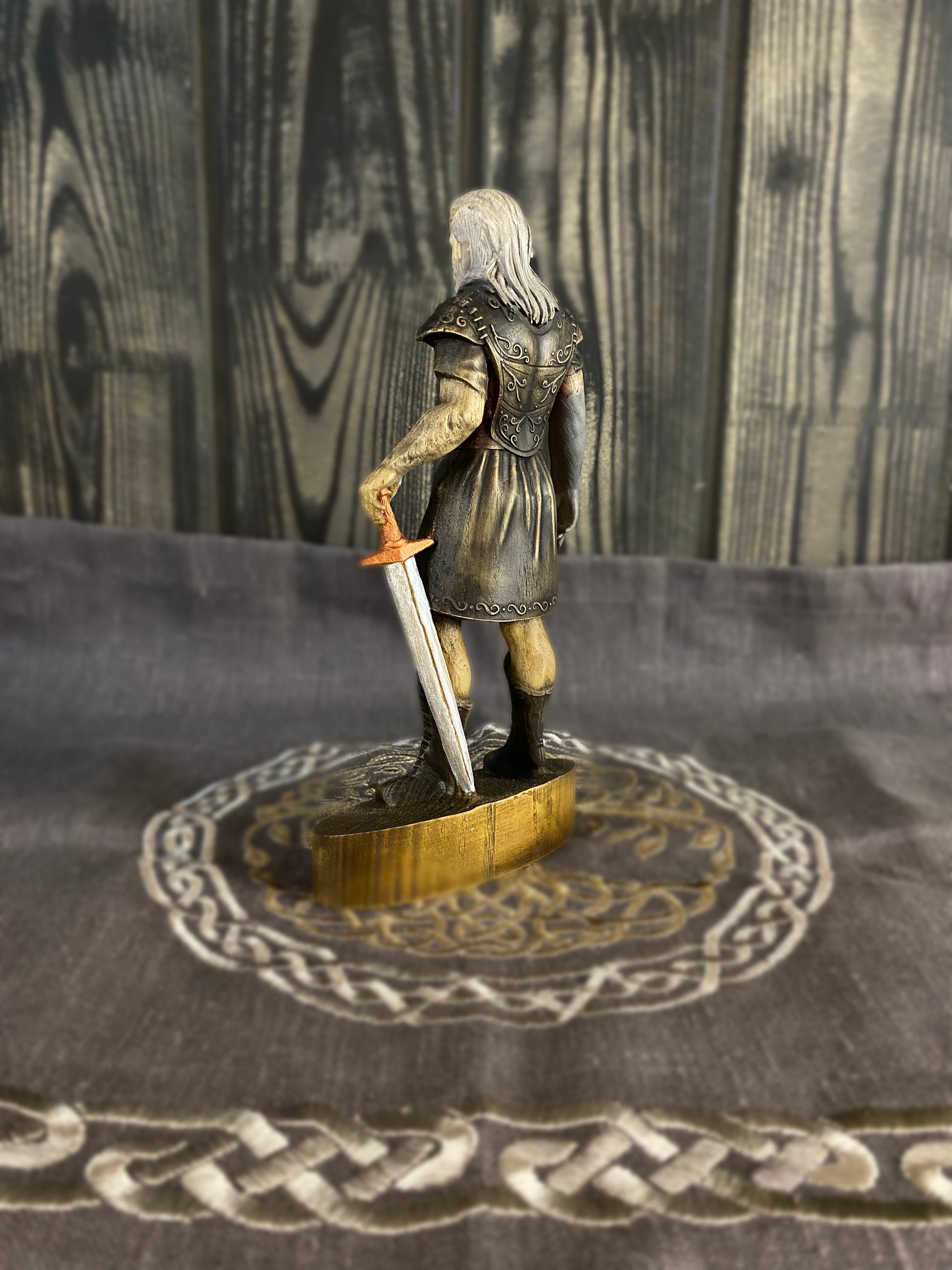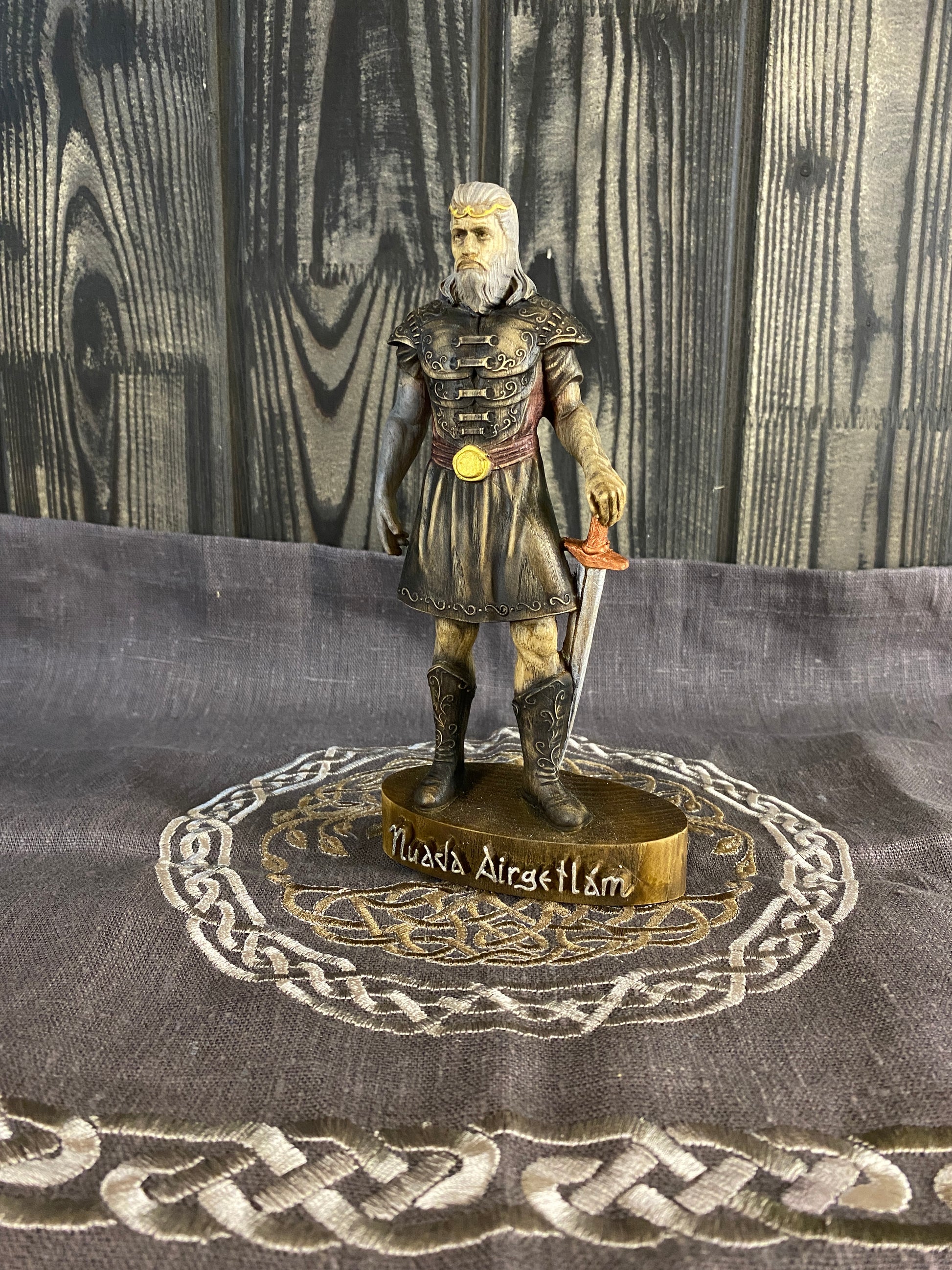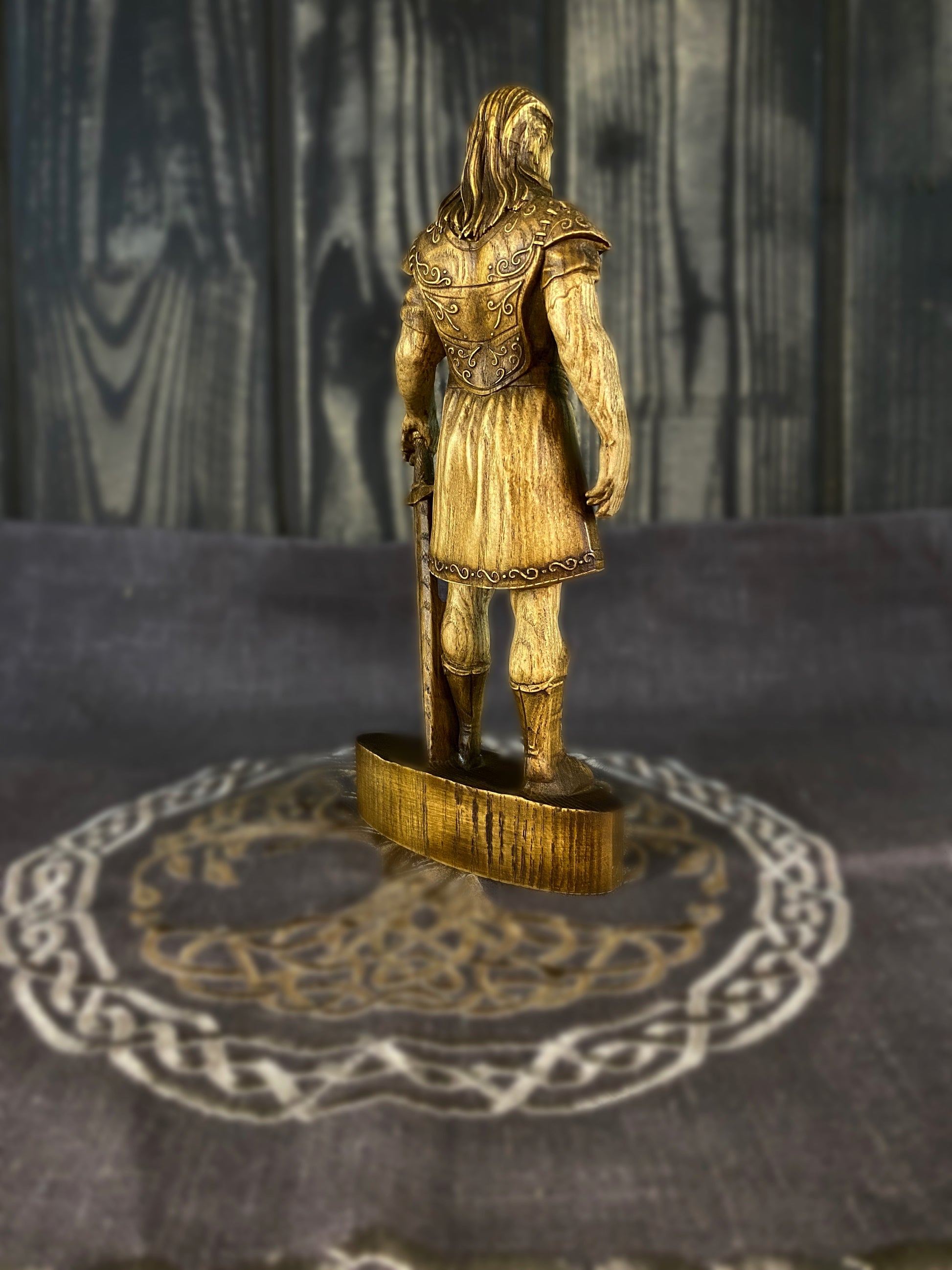Wooden carved statue of the Irish god hellboy Nuada - a symbol of wisdom and power! This fascinating carved statue depicts god nuada, the great god of irish mythology. It is made of natural wood and embodies the symbolism of wisdom, justice and military skill. Every detail of this pagan gods statue is carefully crafted by the hands of a master craftsman, giving it a special uniqueness and artistry.This celtic gods nuada statue has a unique design and details that give it an elegant and mystical look. It depicts pagan statue nuada with a silver prosthetic hand symbolizing his wisdom and magical power. Every part of the irish gods statue is carefully crafted with love for detail.The goddess figurine is made of natural wood, which gives it a natural warmth and organic look. The wooden material gives the wood carved statue special stability and durability. The nuada statue is carved by hand by a professional craftsman, which guarantees high quality and uniqueness of each work. Every detail of the statuette offers exquisite carving and expresses the craftsmanship of the artwork.