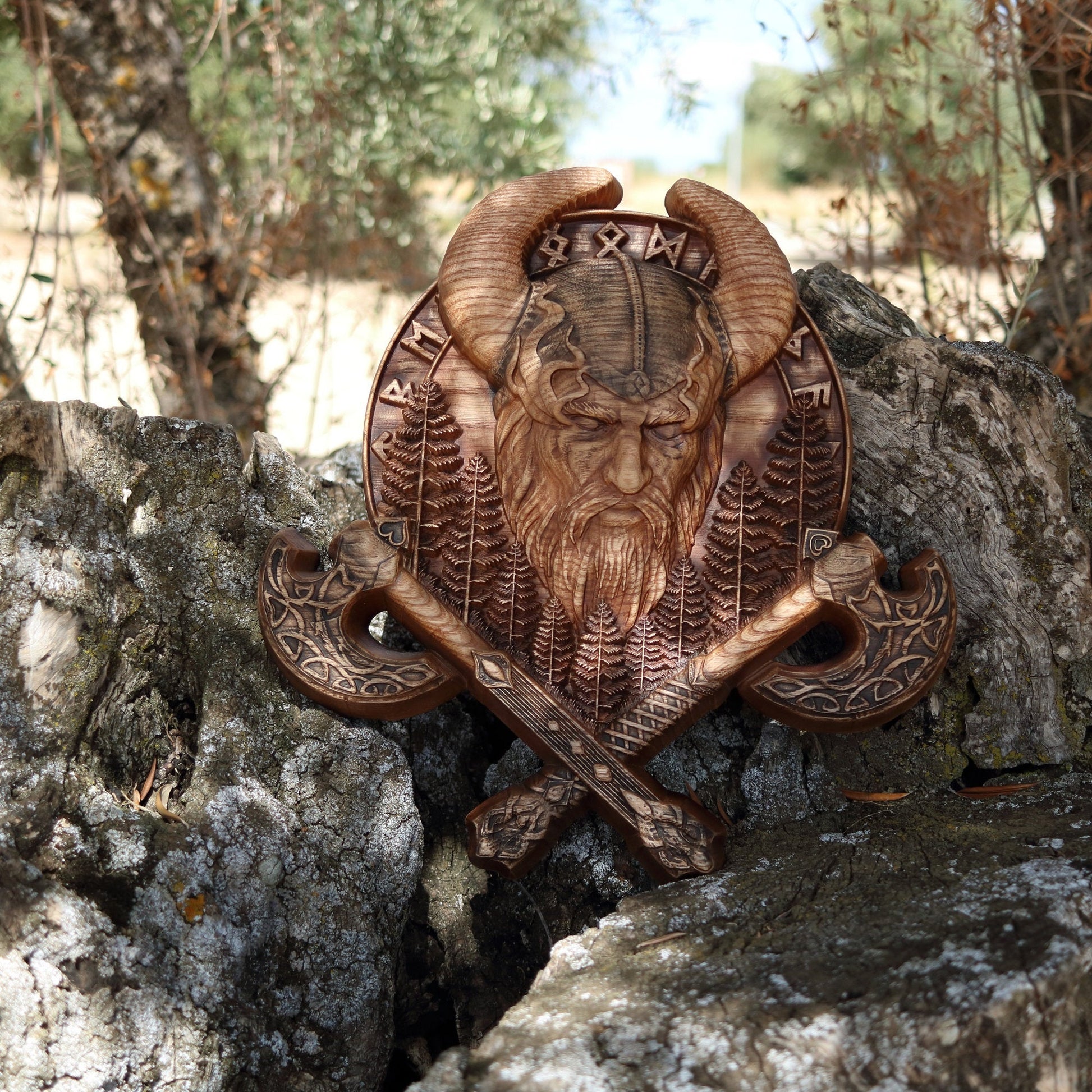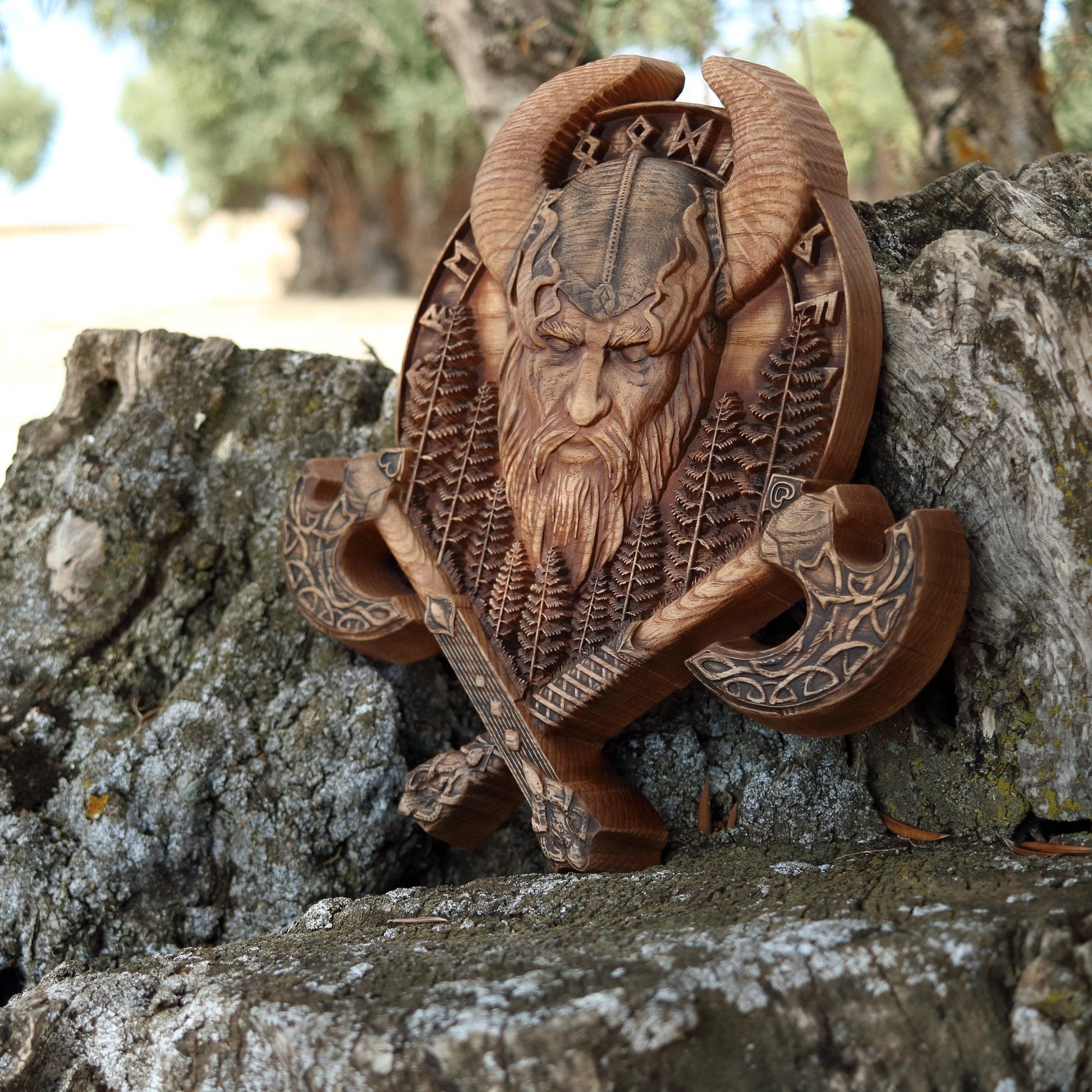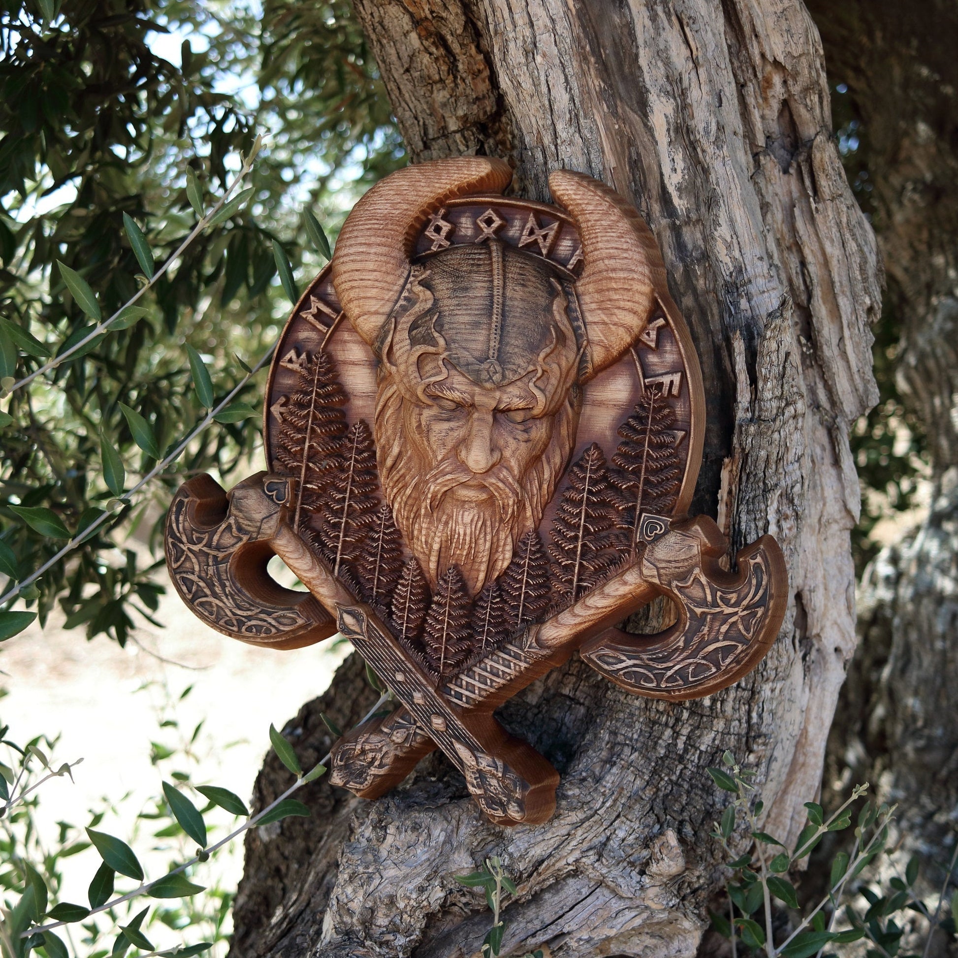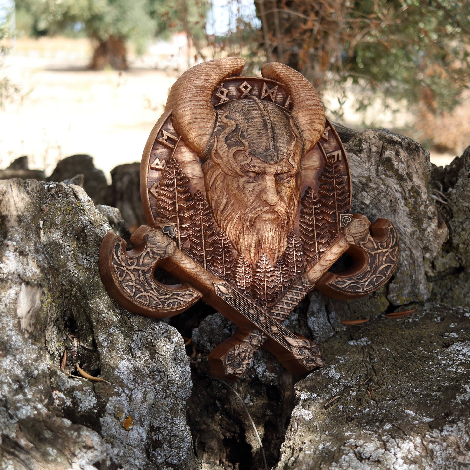 Looking for a unique and stylish shield to add to your collection? Then check out our Odin wood carving! Handmade from eco-friendly materials, this wooden panel is a work of art. Featuring intricate carving, it's perfect for adding a touch of Norse mythology to your decor. Plus, the varnish coating protects the wood and ensures that it will last for years. So why wait? Order your Odin wood carving today!