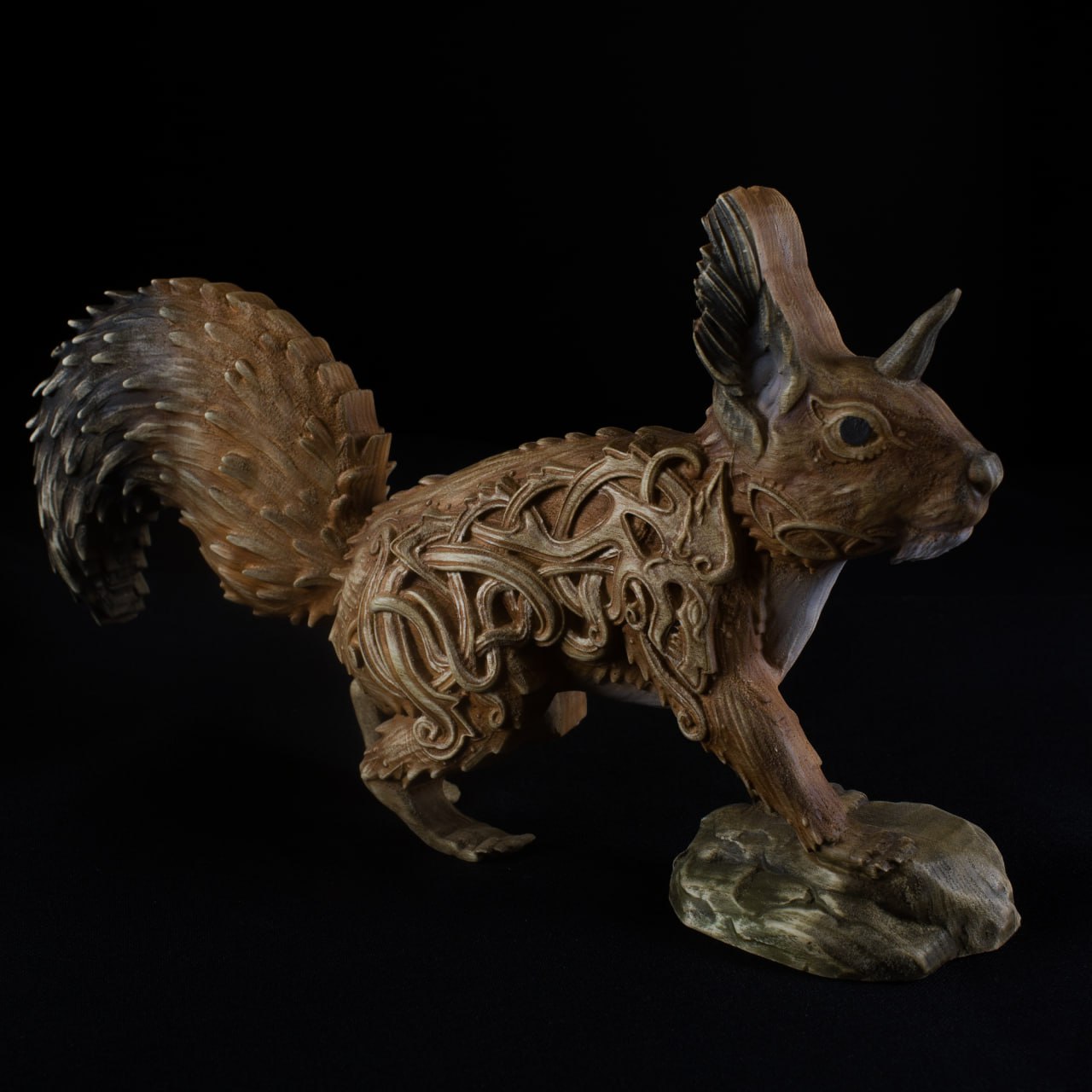 The wood squirrel statue Ratatoskr - is an incredibly attractive wooden sculpture that combines the magic of art with the legendary figure of norse mythology.