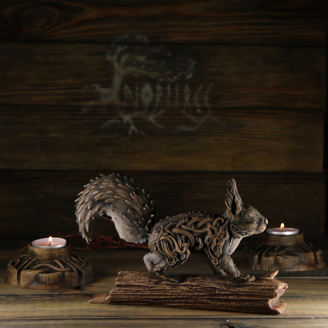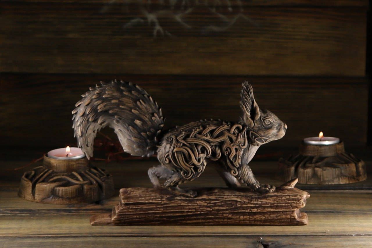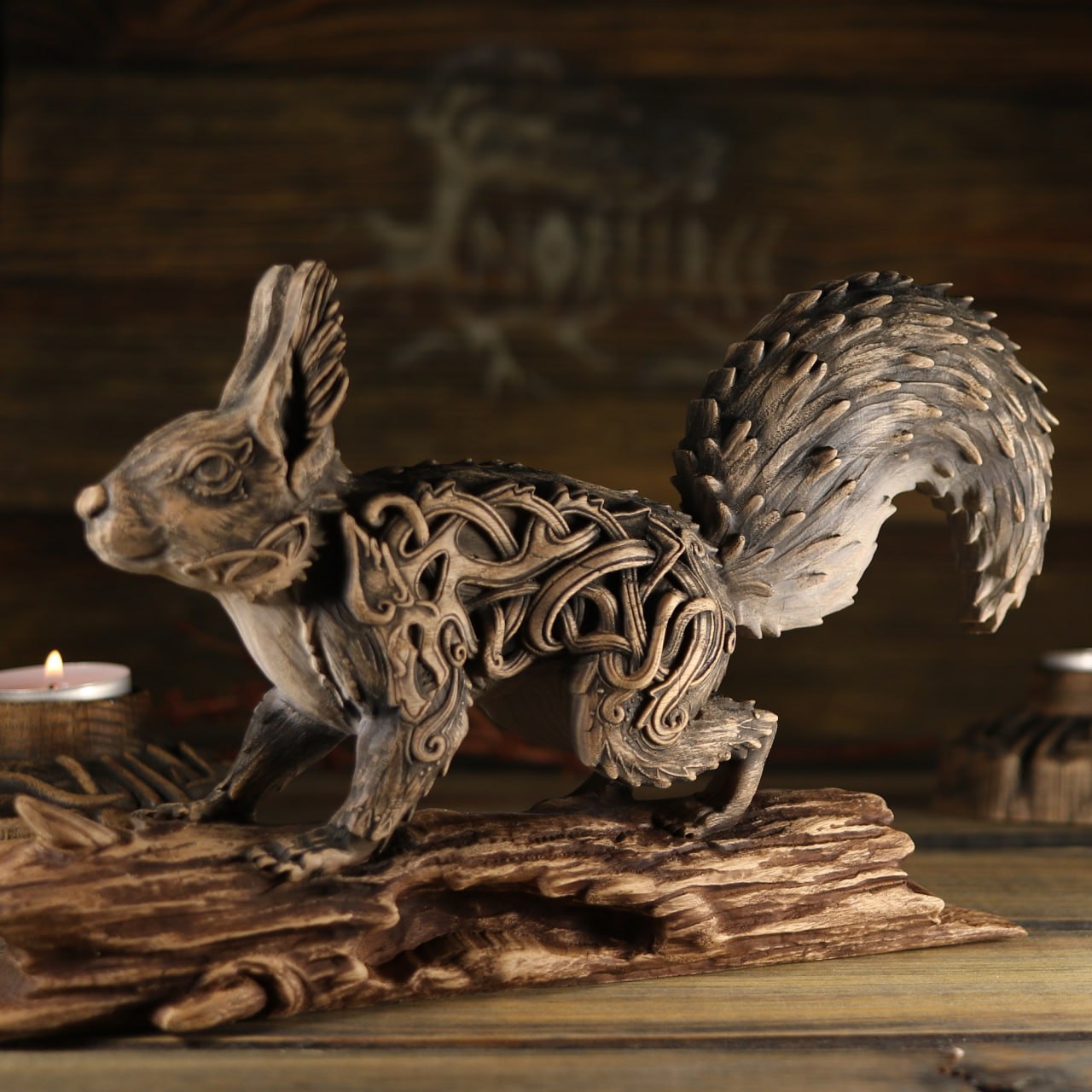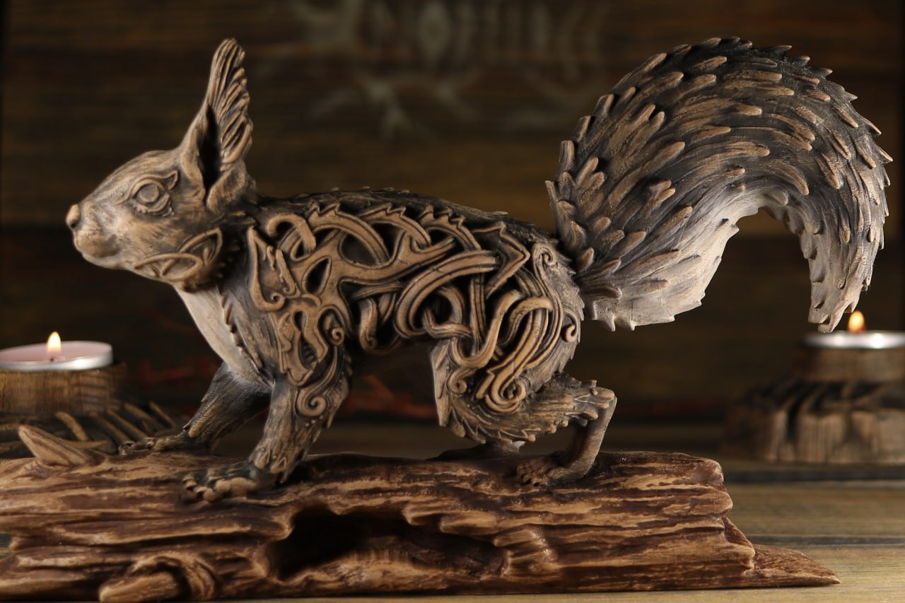 Red Squirrel Ratatoskr - Wooden Squirrel Statue Norse Mythology Yggdrasil