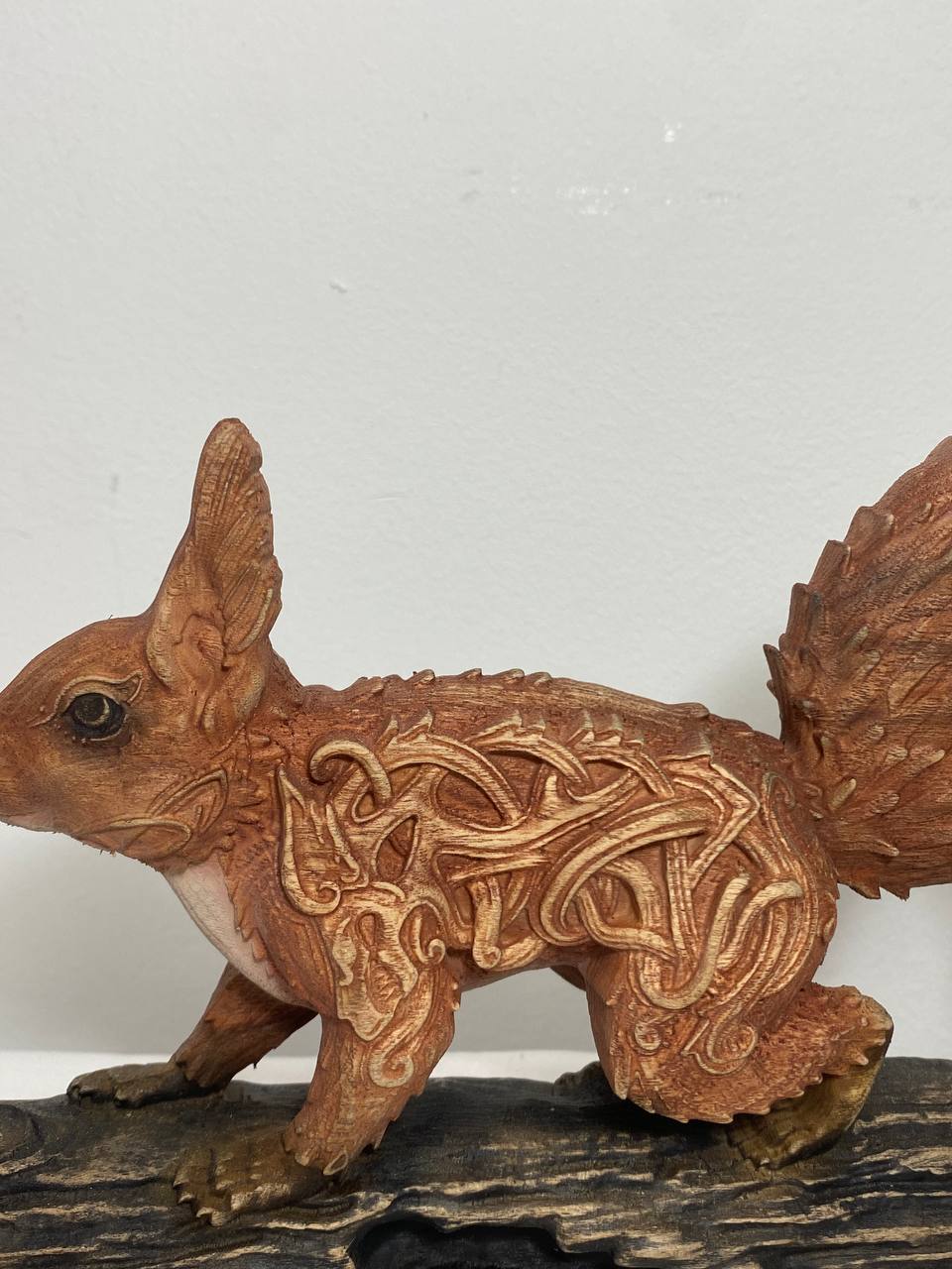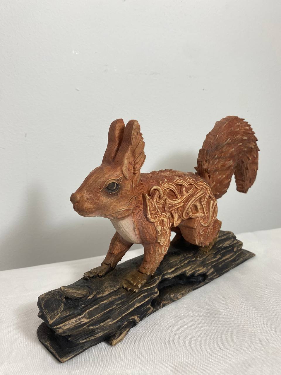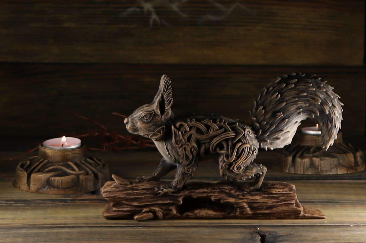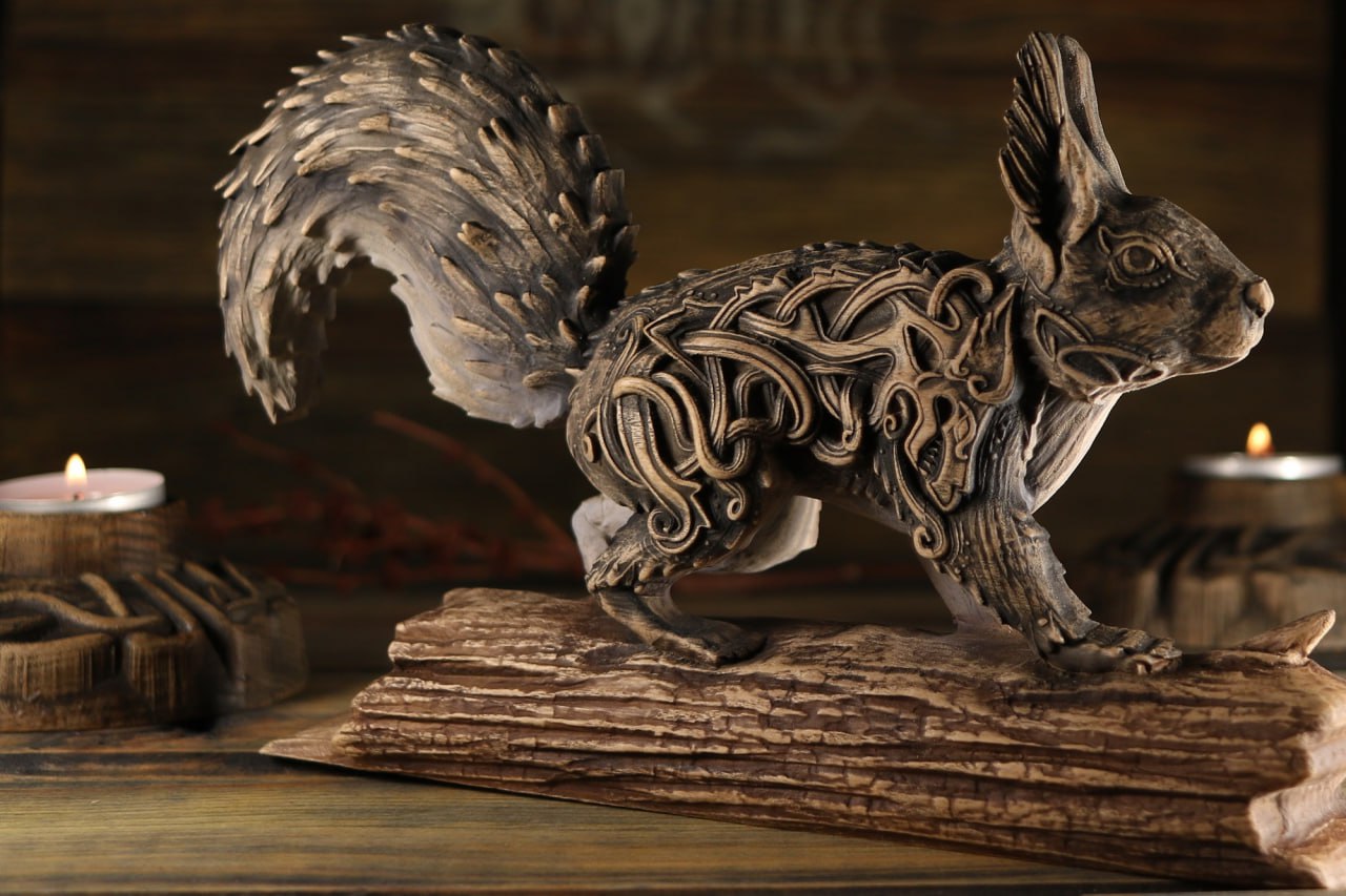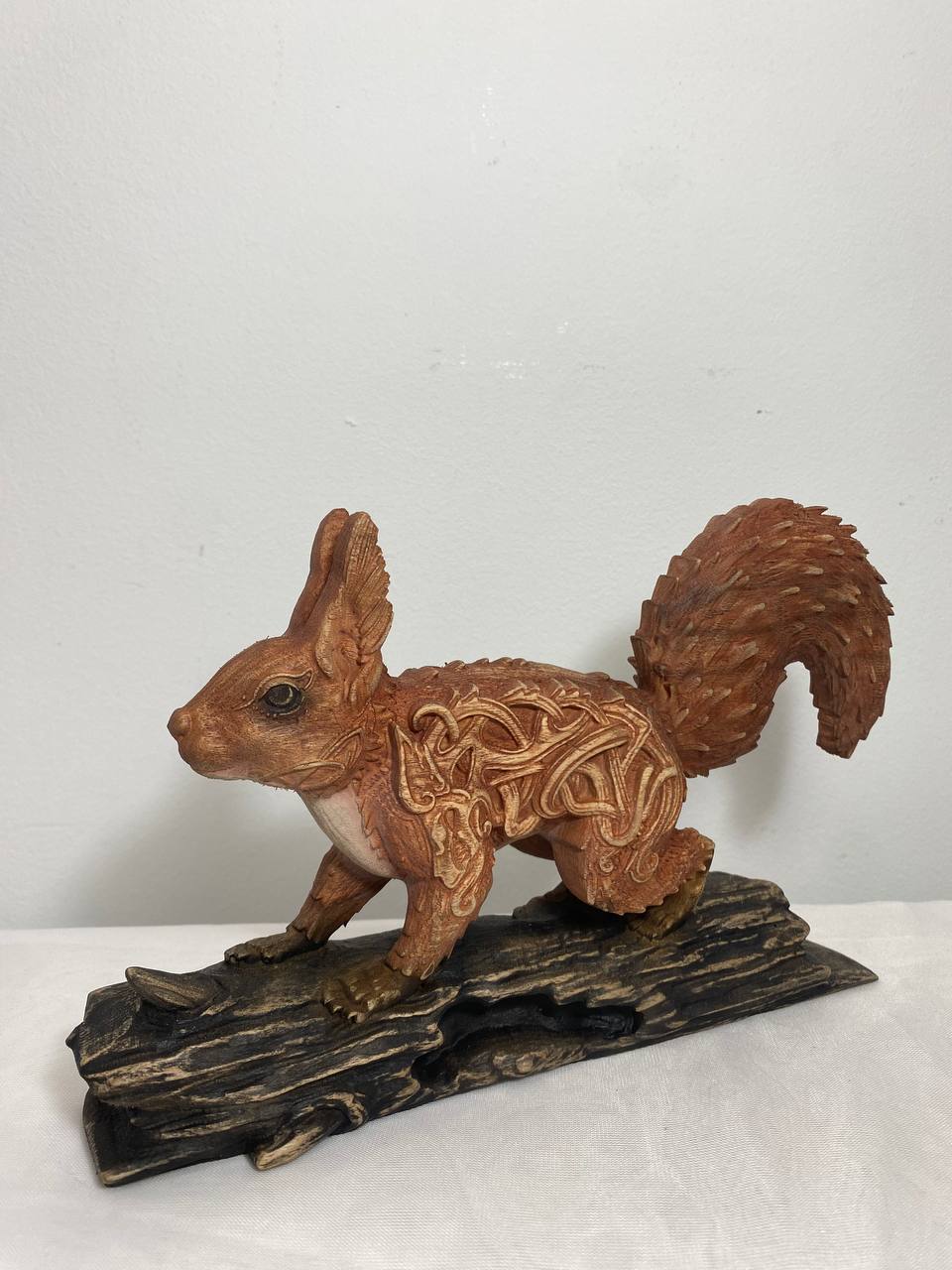 Red Squirrel Ratatoskr - Wooden Squirrel Statue Norse Mythology Yggdrasil