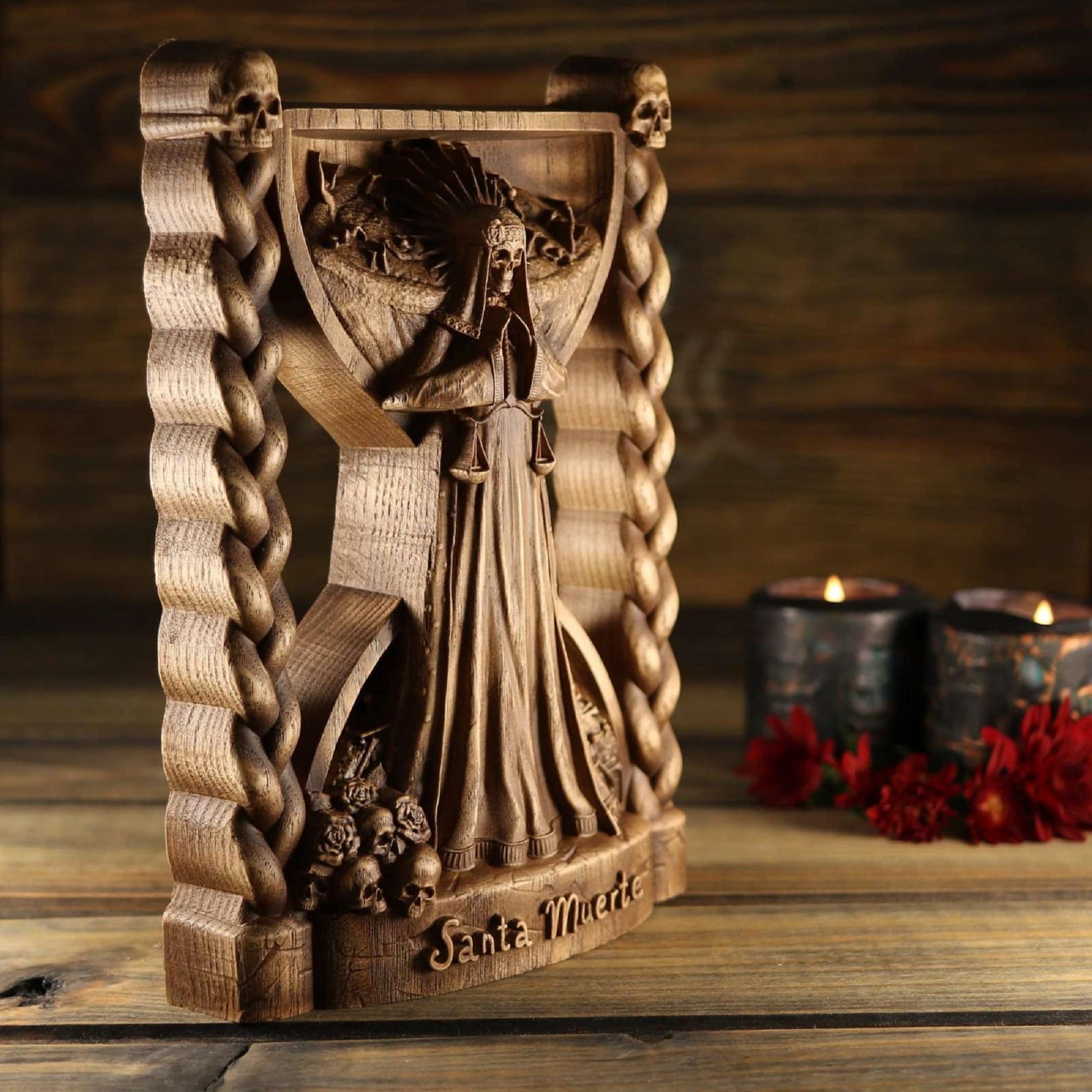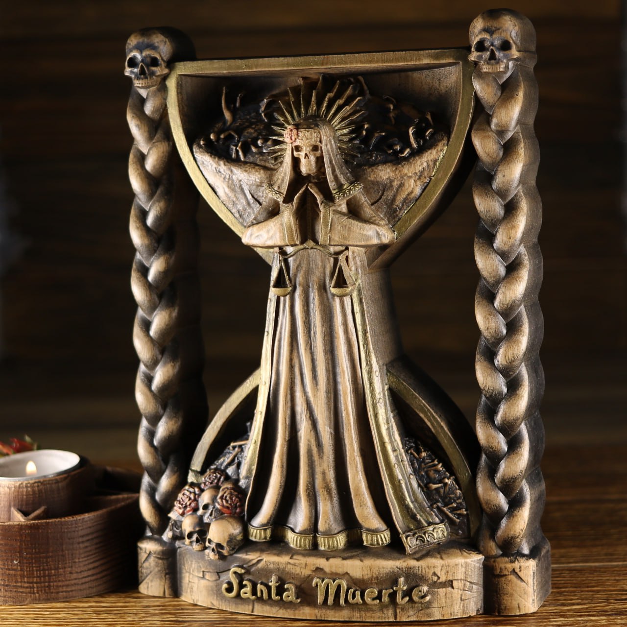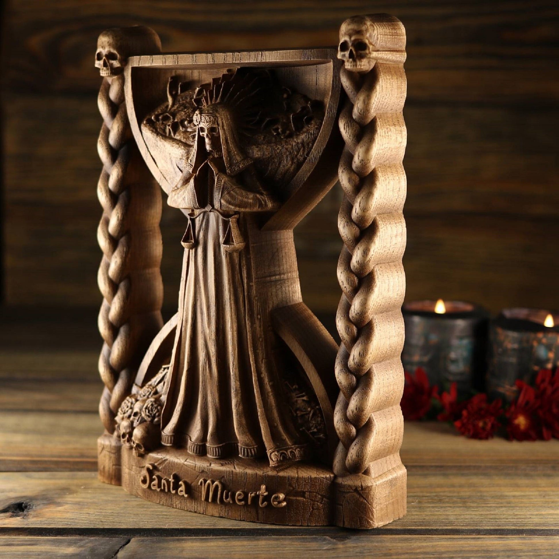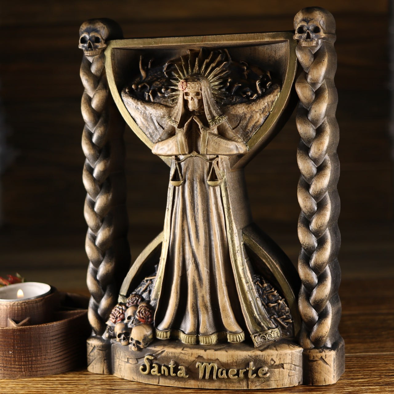 Do you fear death? Or do you see death as a natural and beautiful part of life? If you fall into the latter category, then our Santa Muerte wooden statue is the perfect addition to your décor.