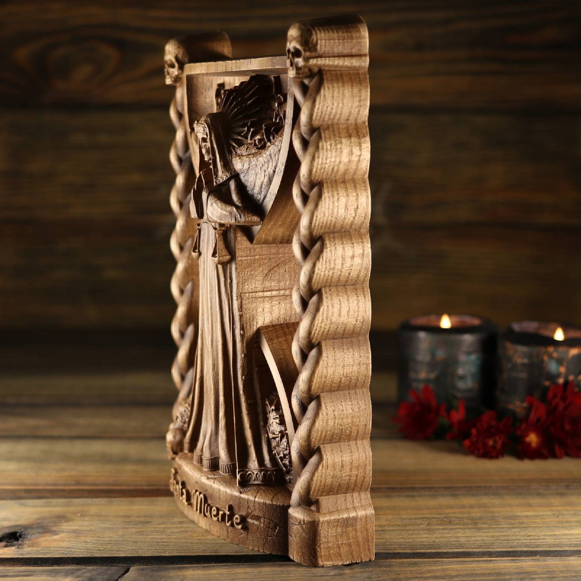 Santa Muerte, Holy death, Satanic Death wooden statue, Wood carving