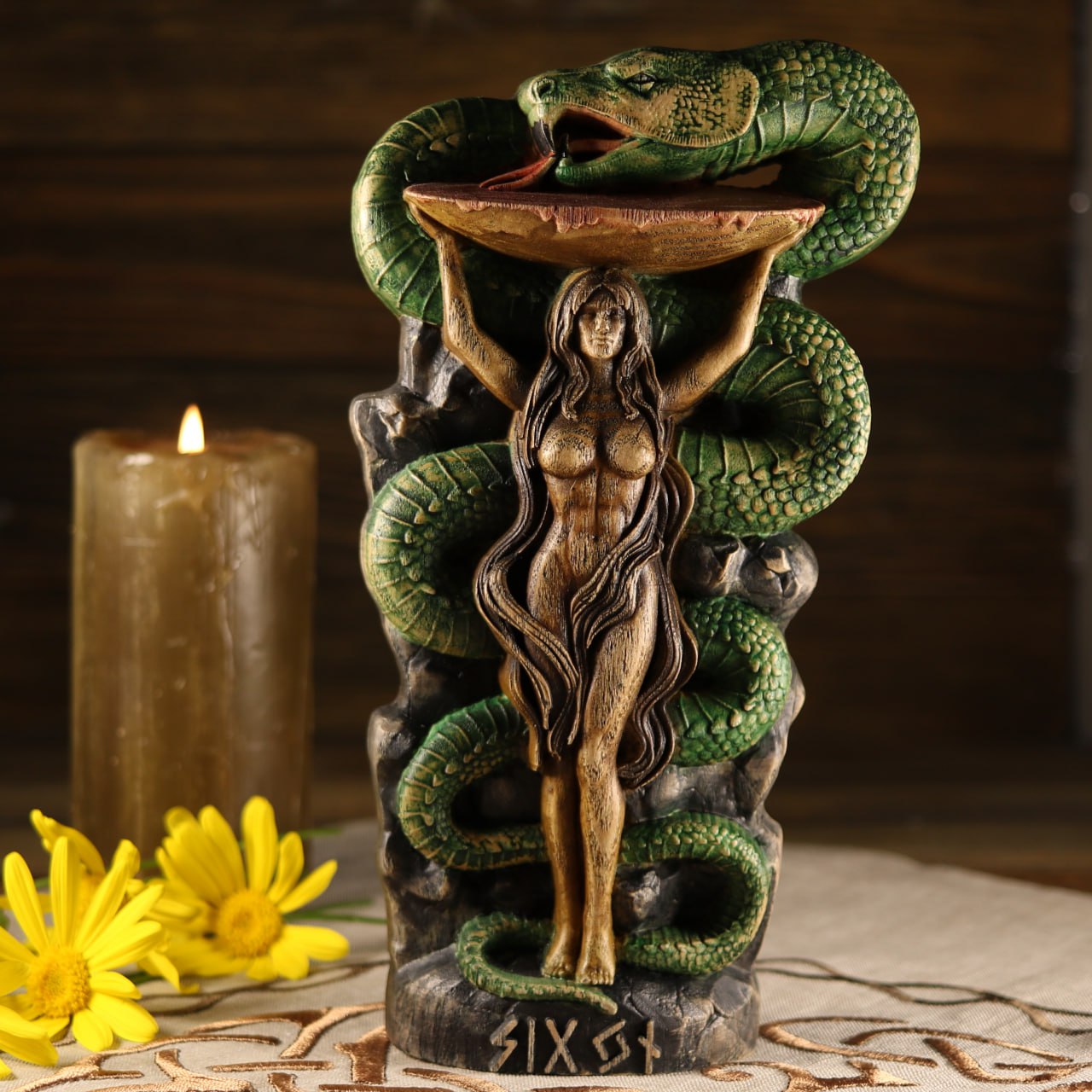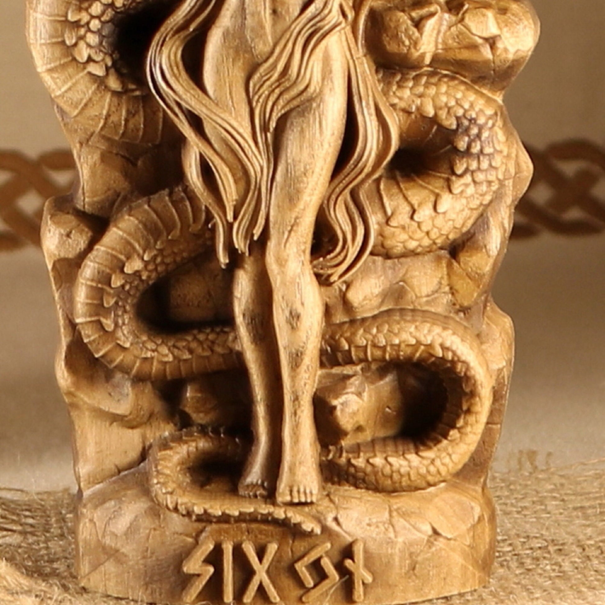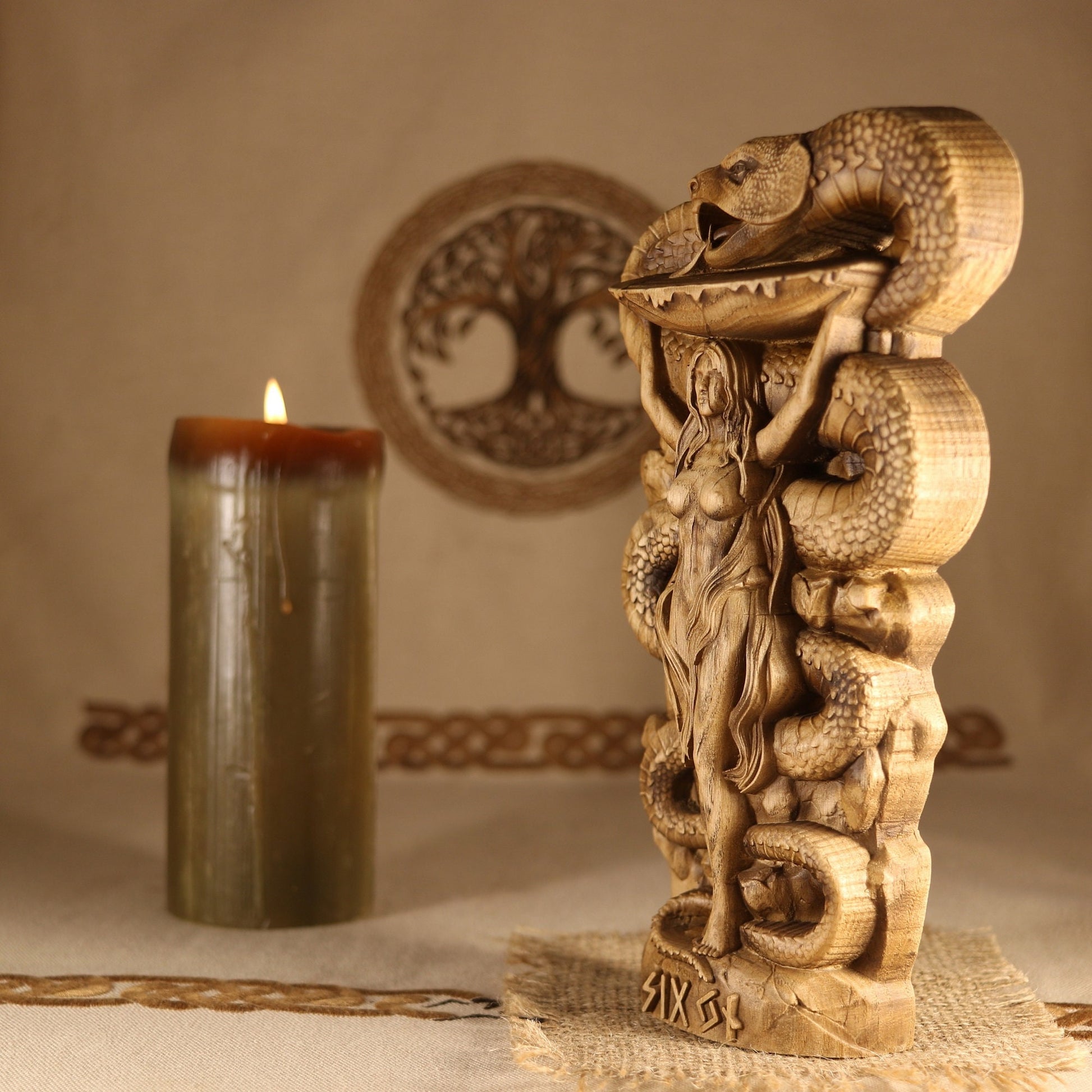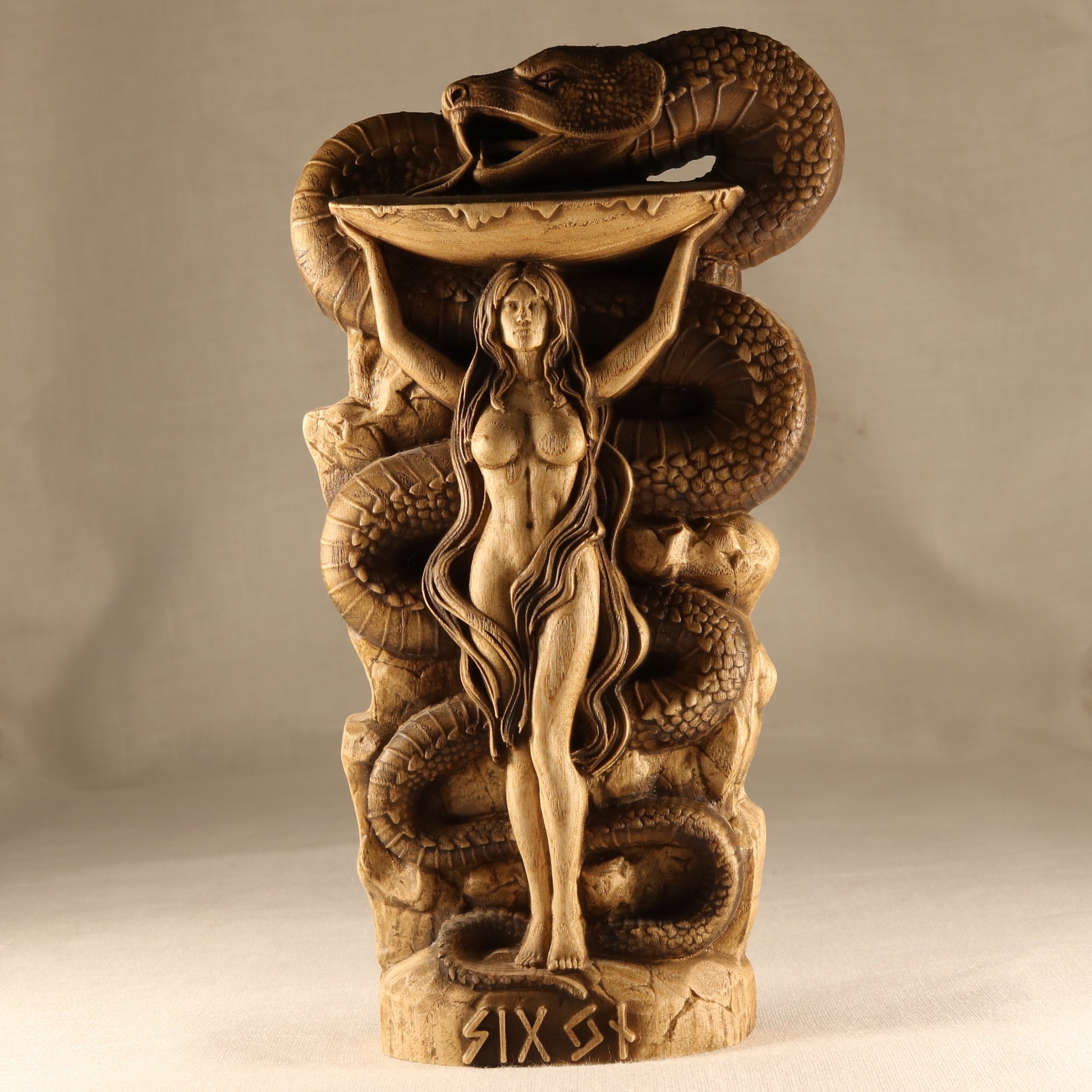 Sigyn Scandinavian Decor - Wooden Statue Norse Mythology