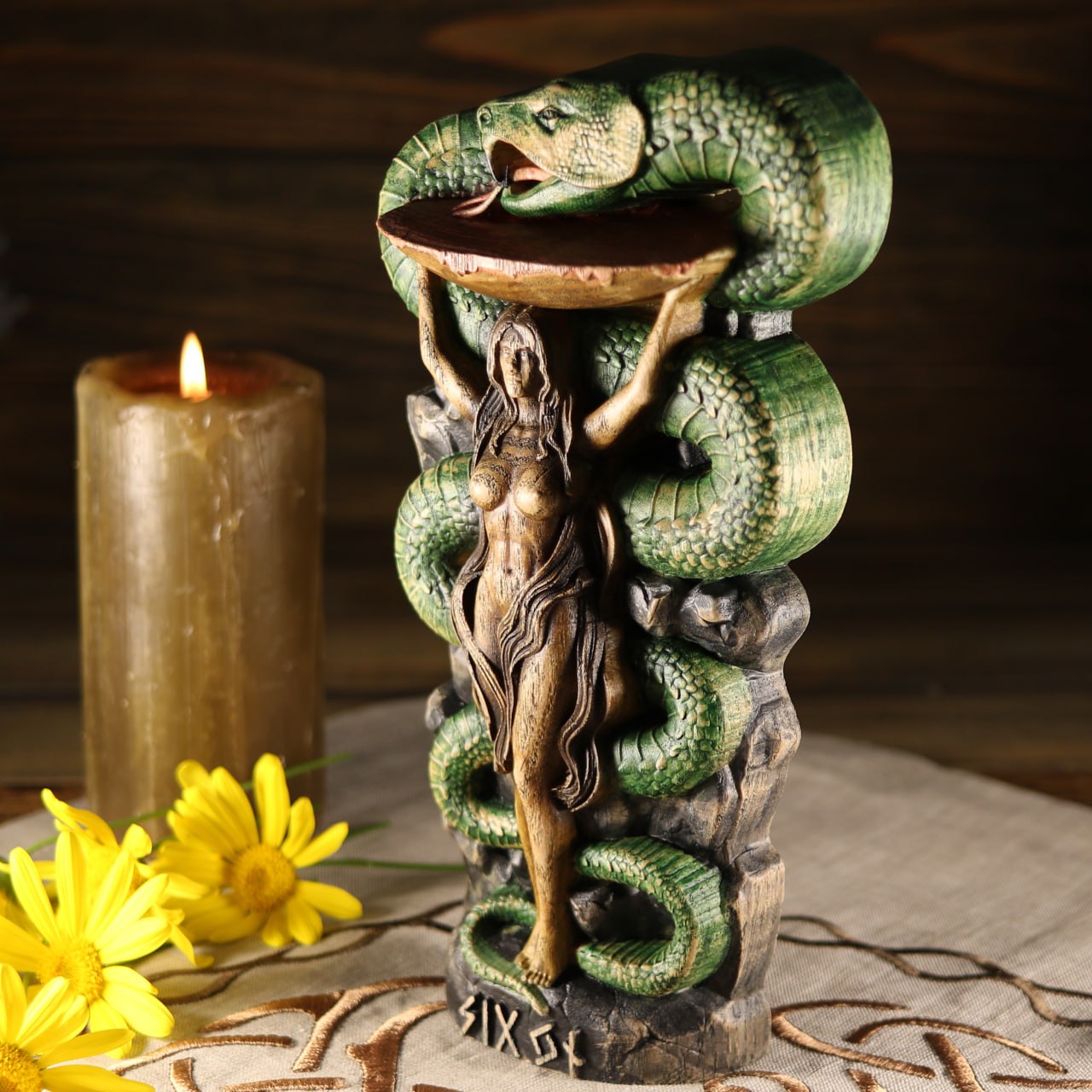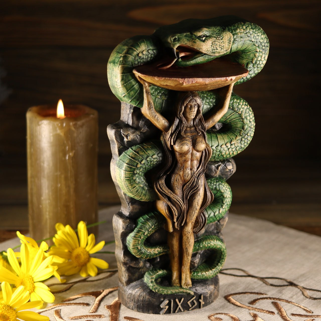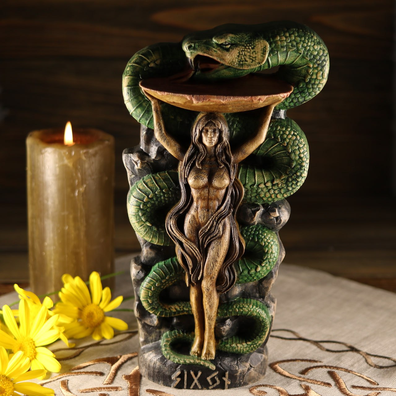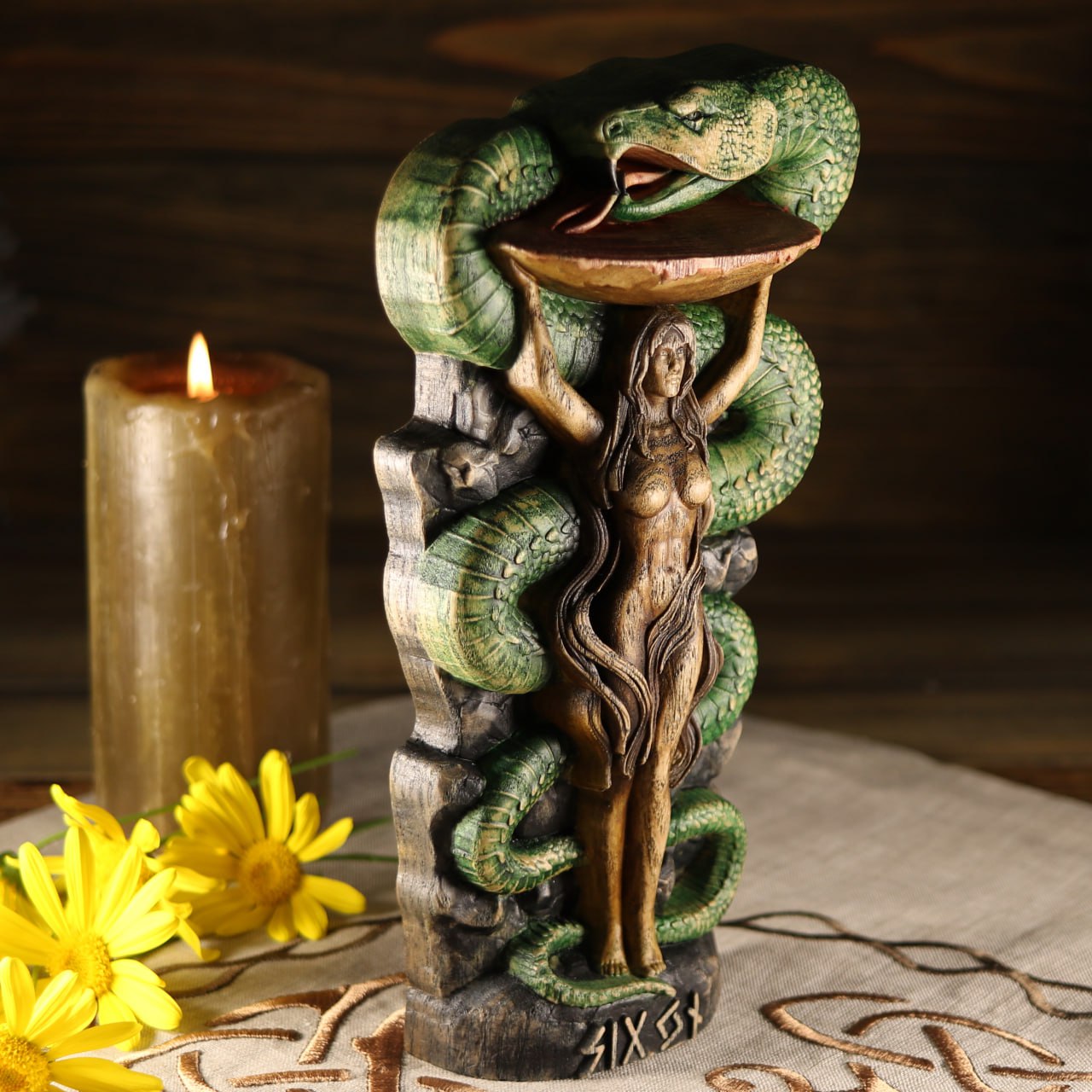 Sigyn Scandinavian Decor - Wooden Statue Norse Mythology