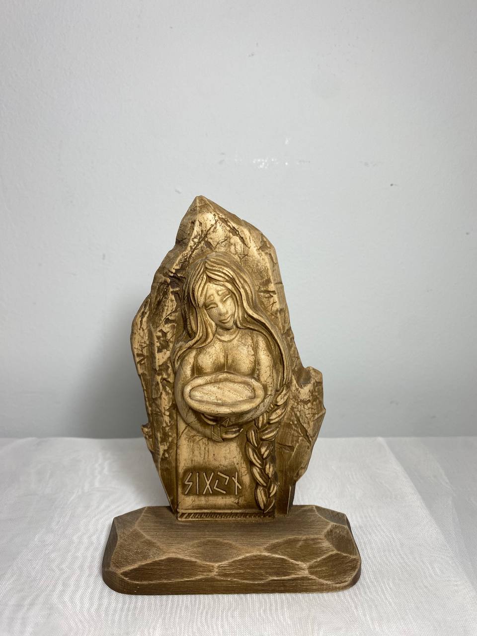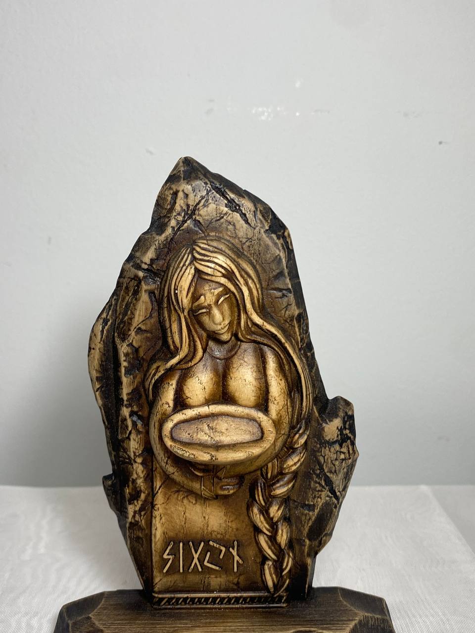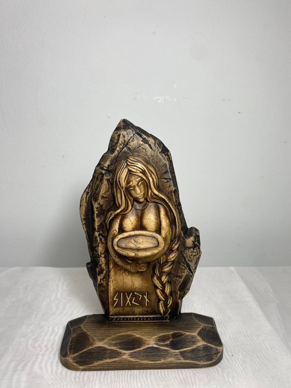 Looking for a little extra luck in your life? Then check out Sigyn, the Pagan goddess statue who personifies sincerity and loyalty! This handmade wooden carving is perfect for your altar or as a decorative figurine. It's made from ecological materials and has a beautiful varnish finish.