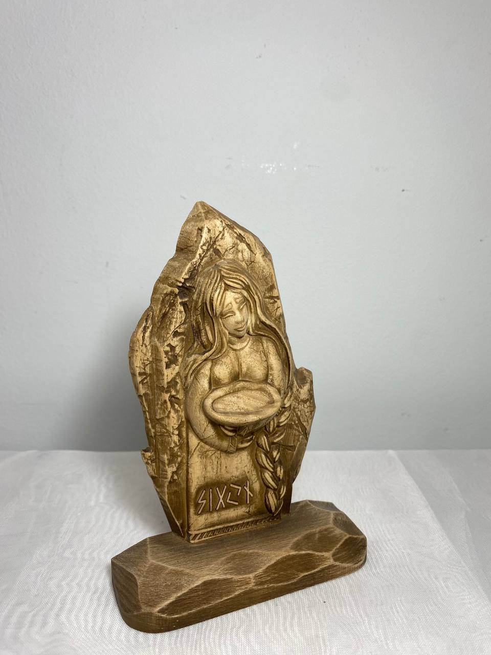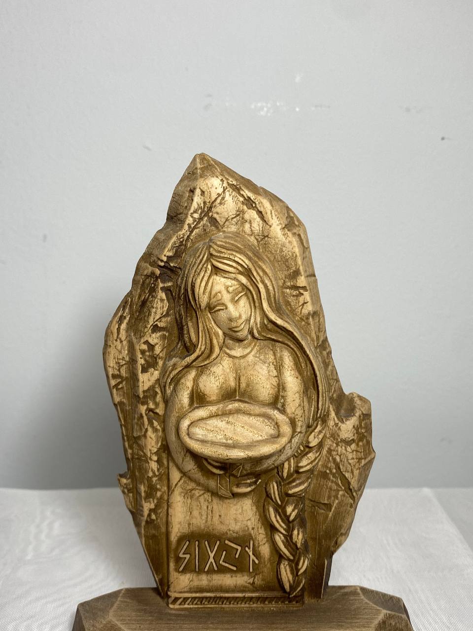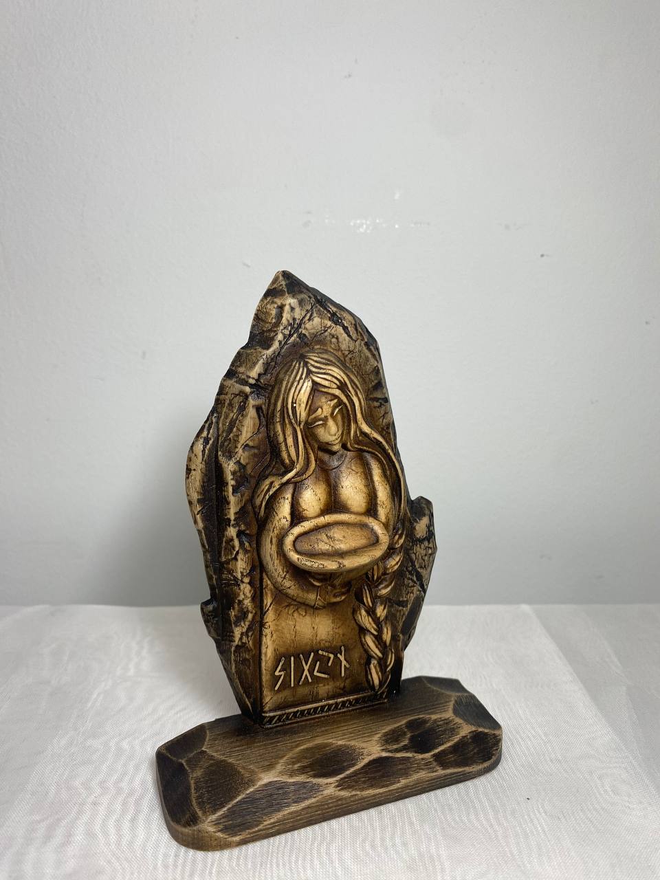 Looking for a little extra luck in your life? Then check out Sigyn, the Pagan goddess statue who personifies sincerity and loyalty! This handmade wooden carving is perfect for your altar or as a decorative figurine. It's made from ecological materials and has a beautiful varnish finish.