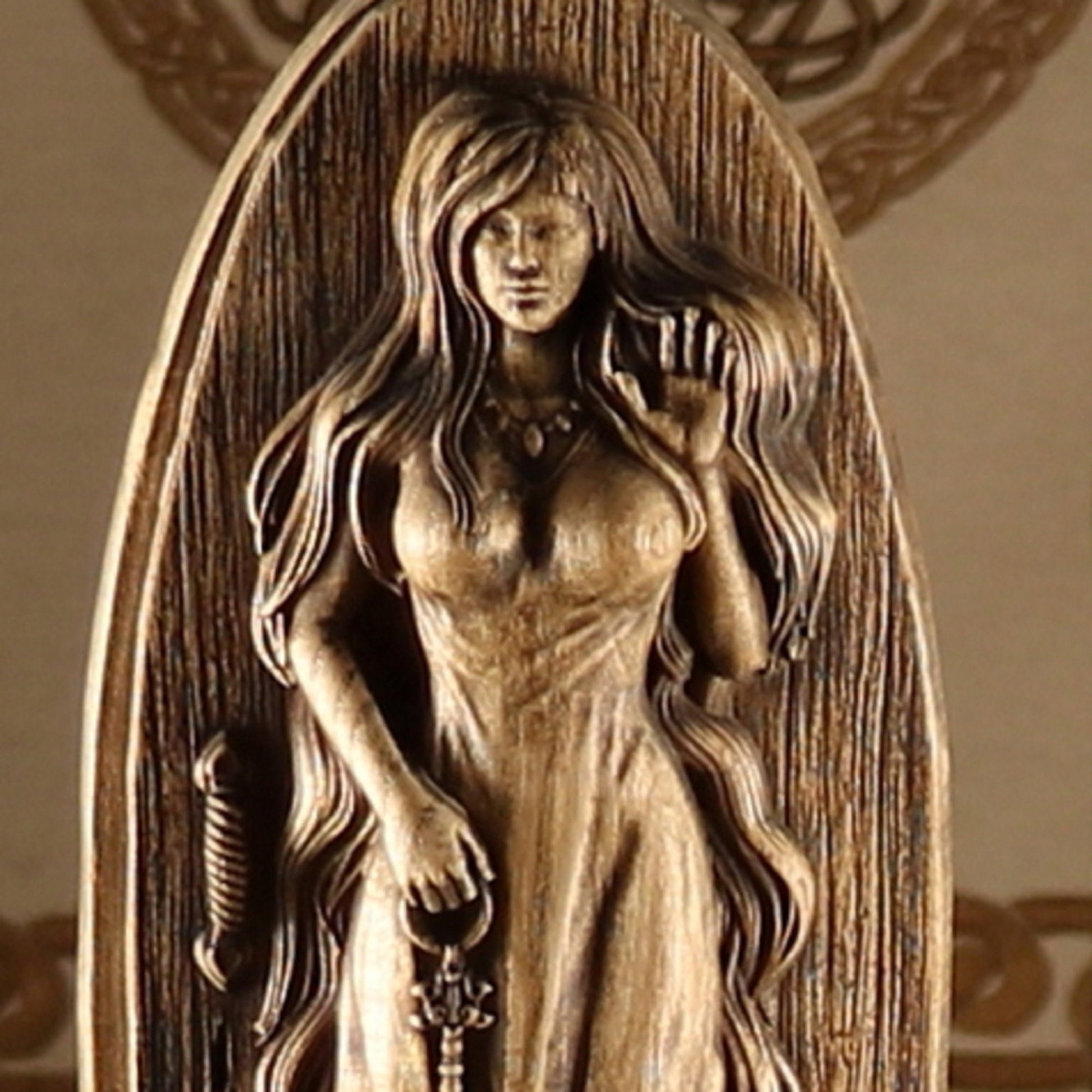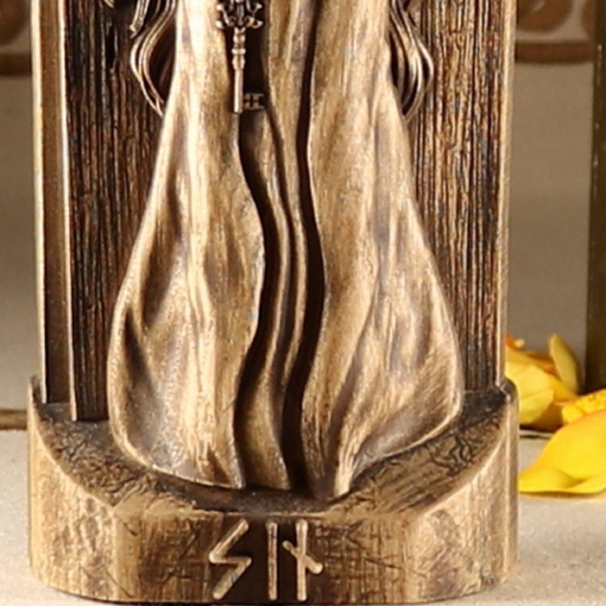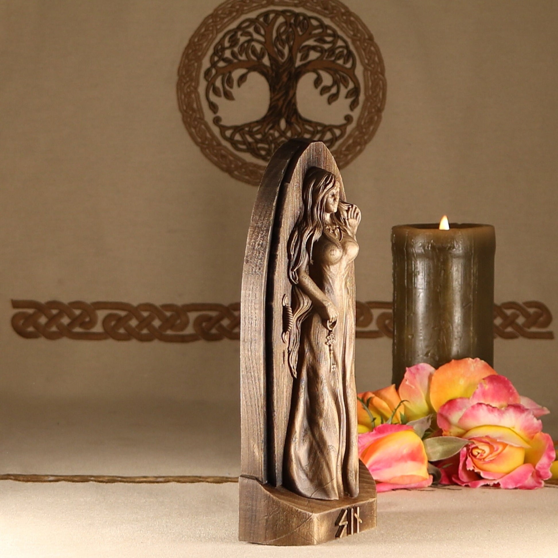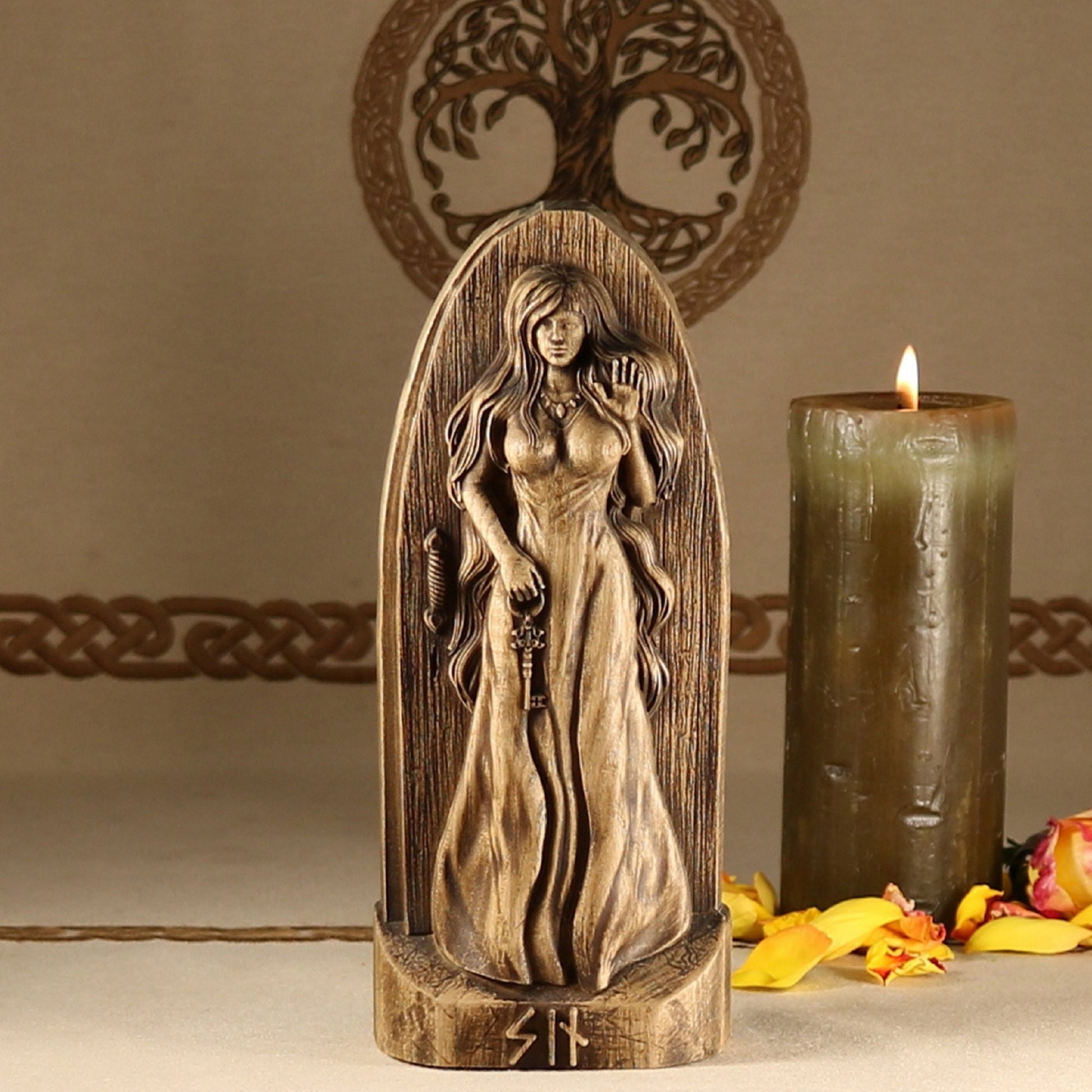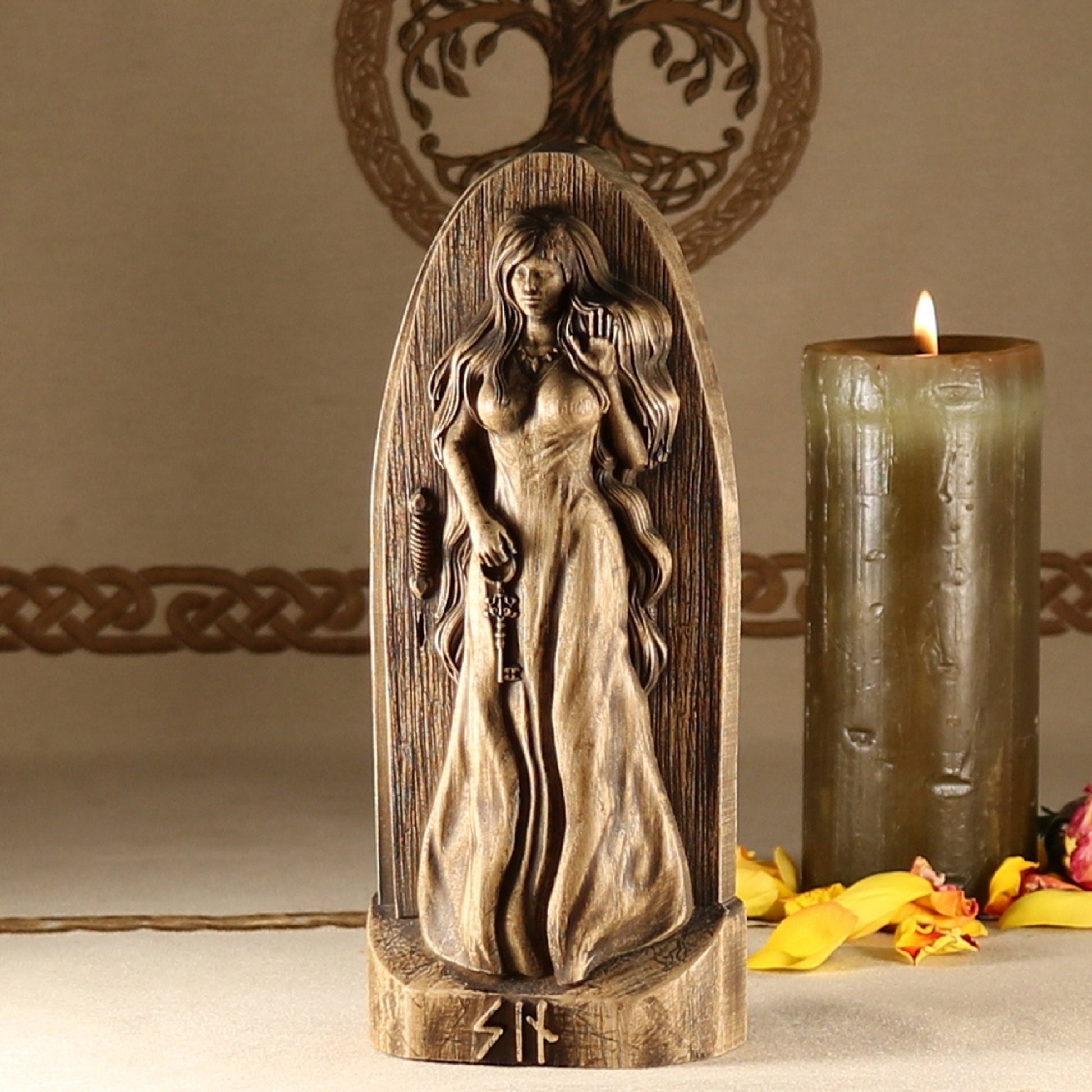 Introducing Syn, the Norse goddess of vigilance, truth, and doorways! This handmade wooden statue is carved from ecological material and coated with varnish for a long-lasting finish.