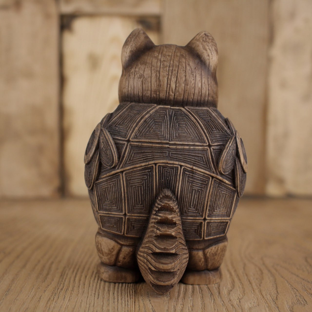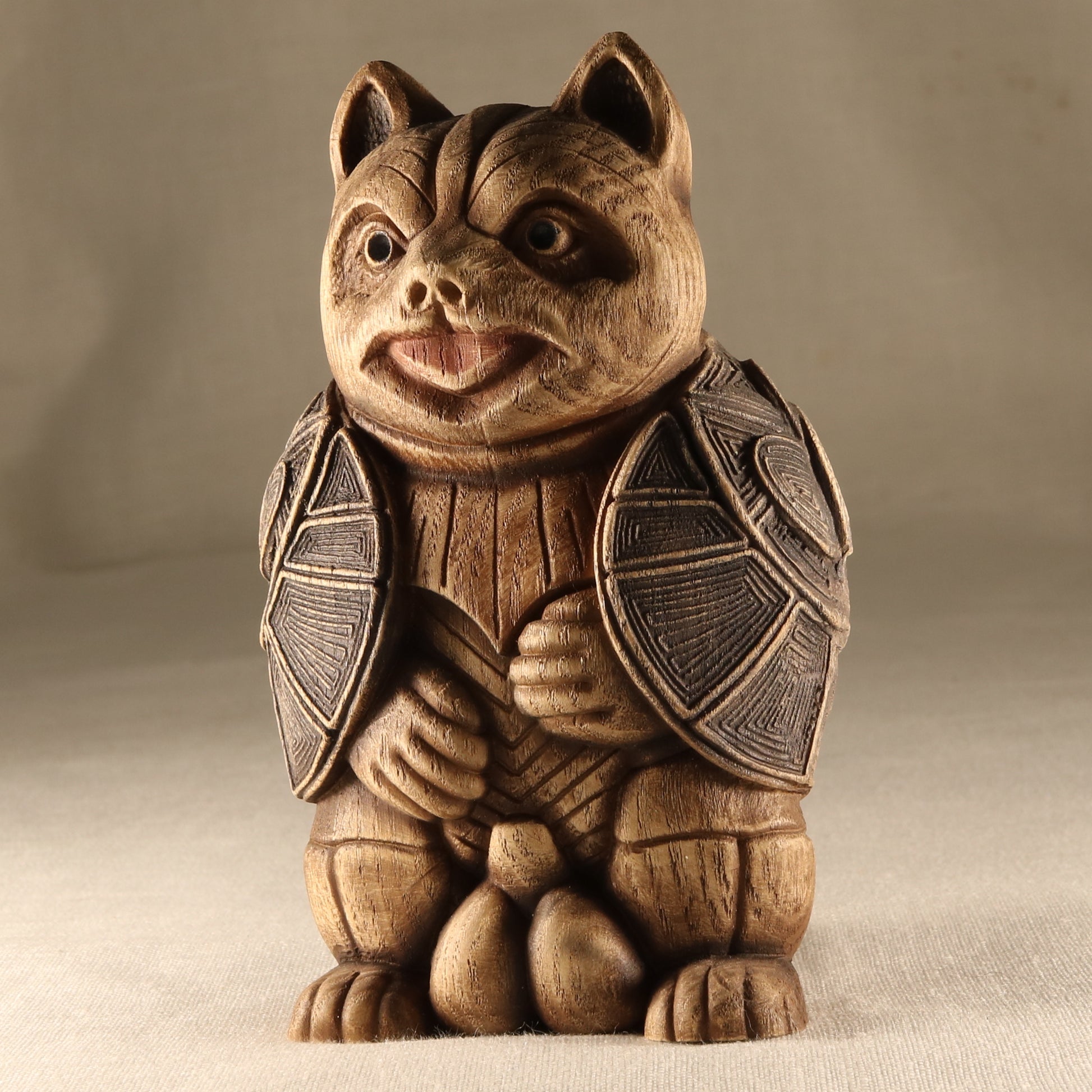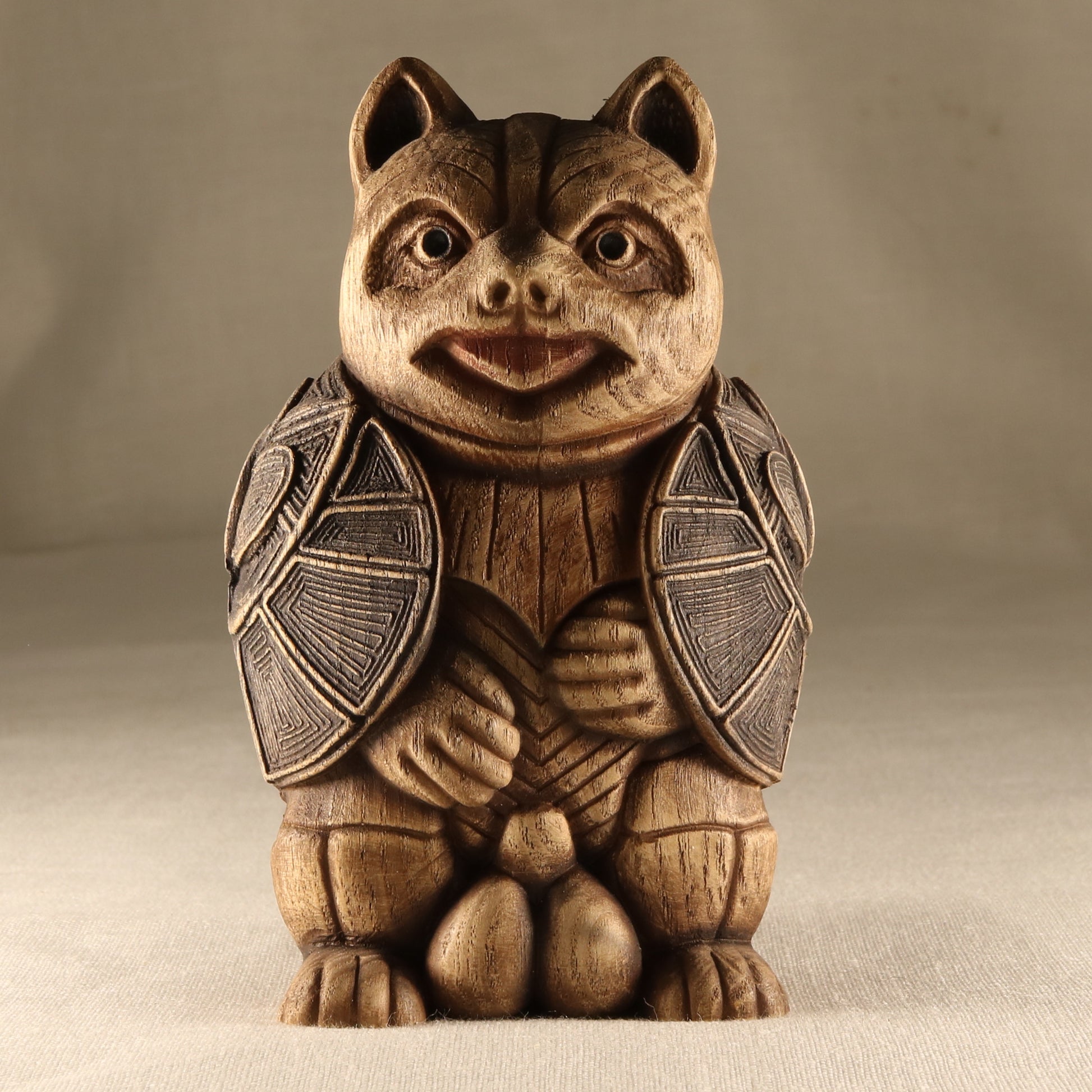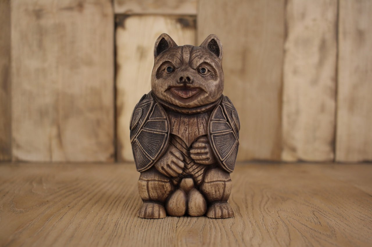 Tanuki Statue - A Charming Wooden Carved Symbol of Luck and Happiness