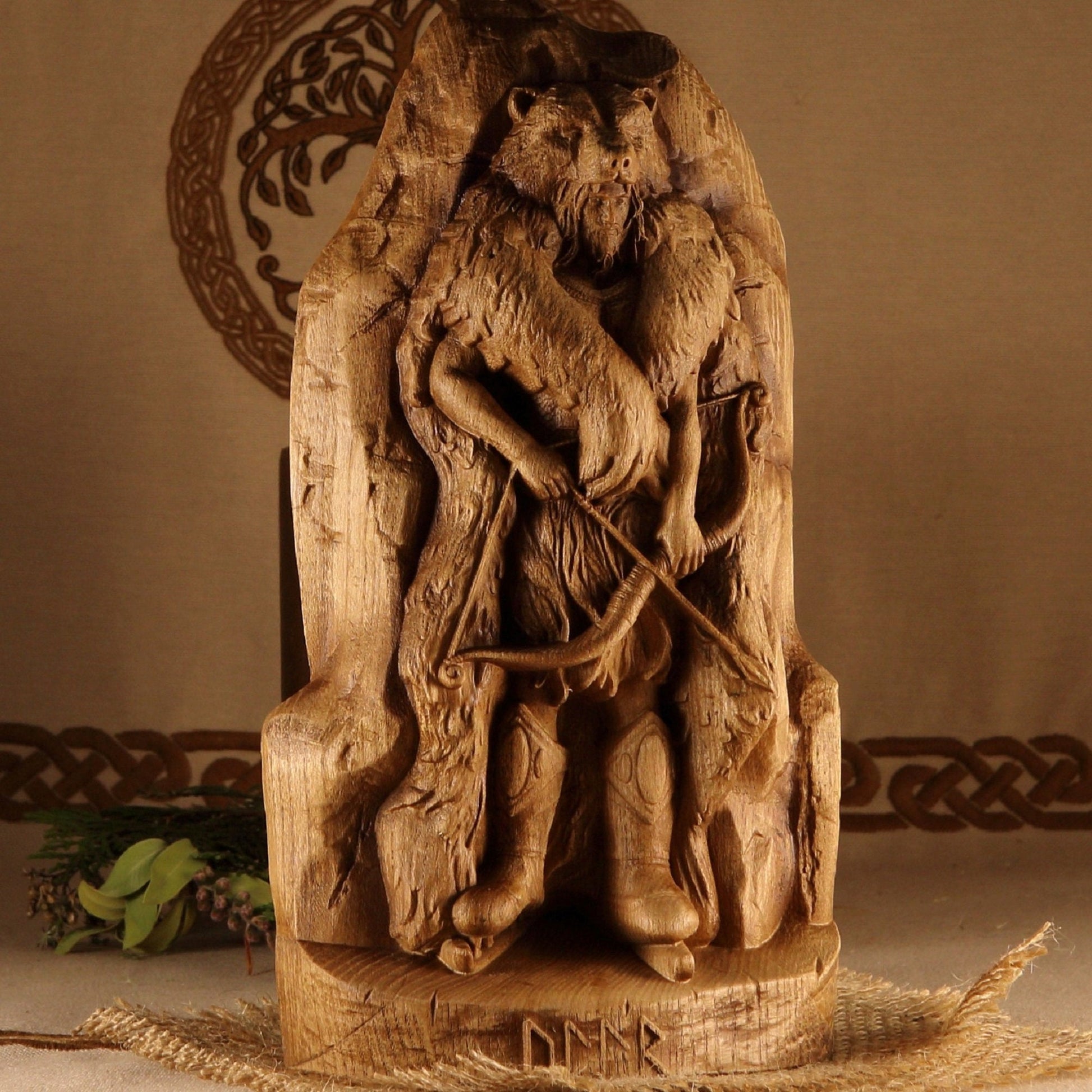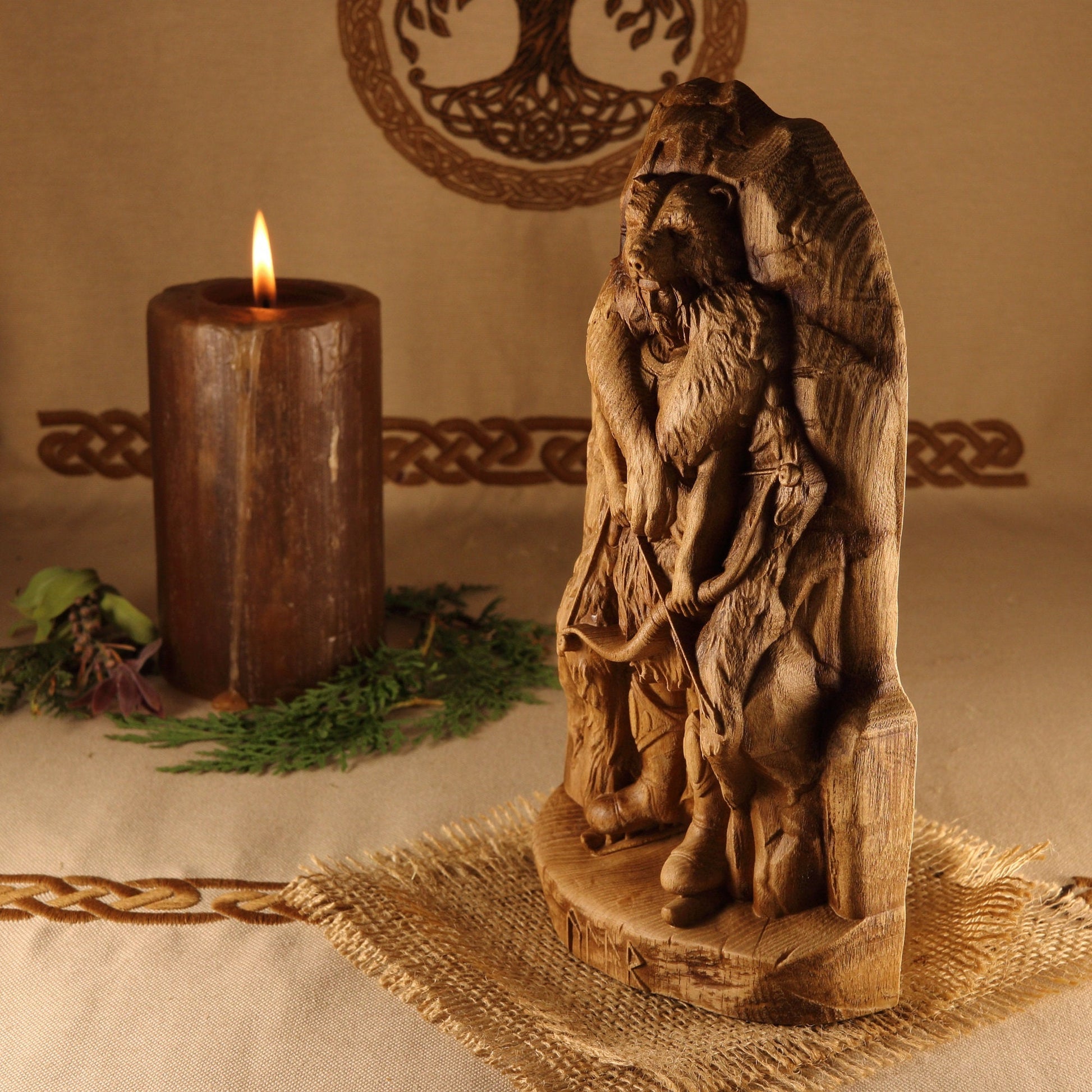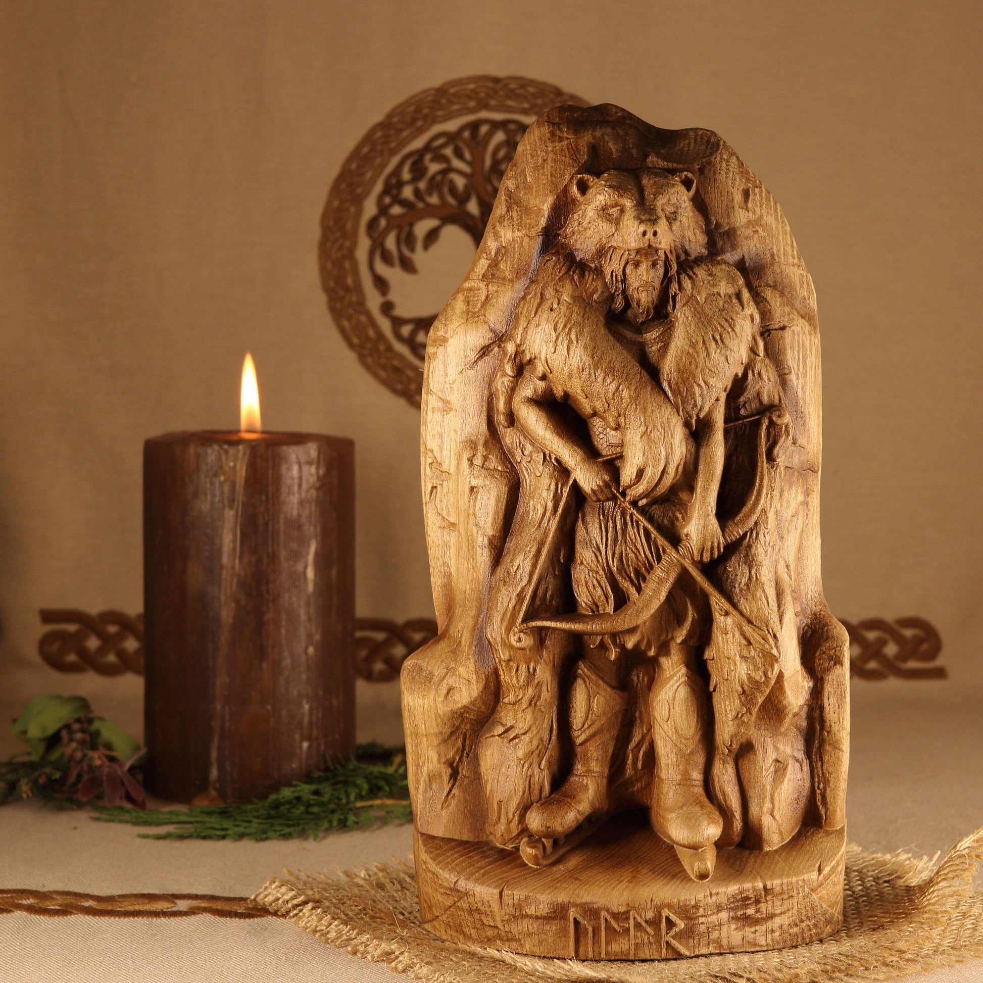 Ullr, Carved wood statue, God and goddess statue altar, Idol