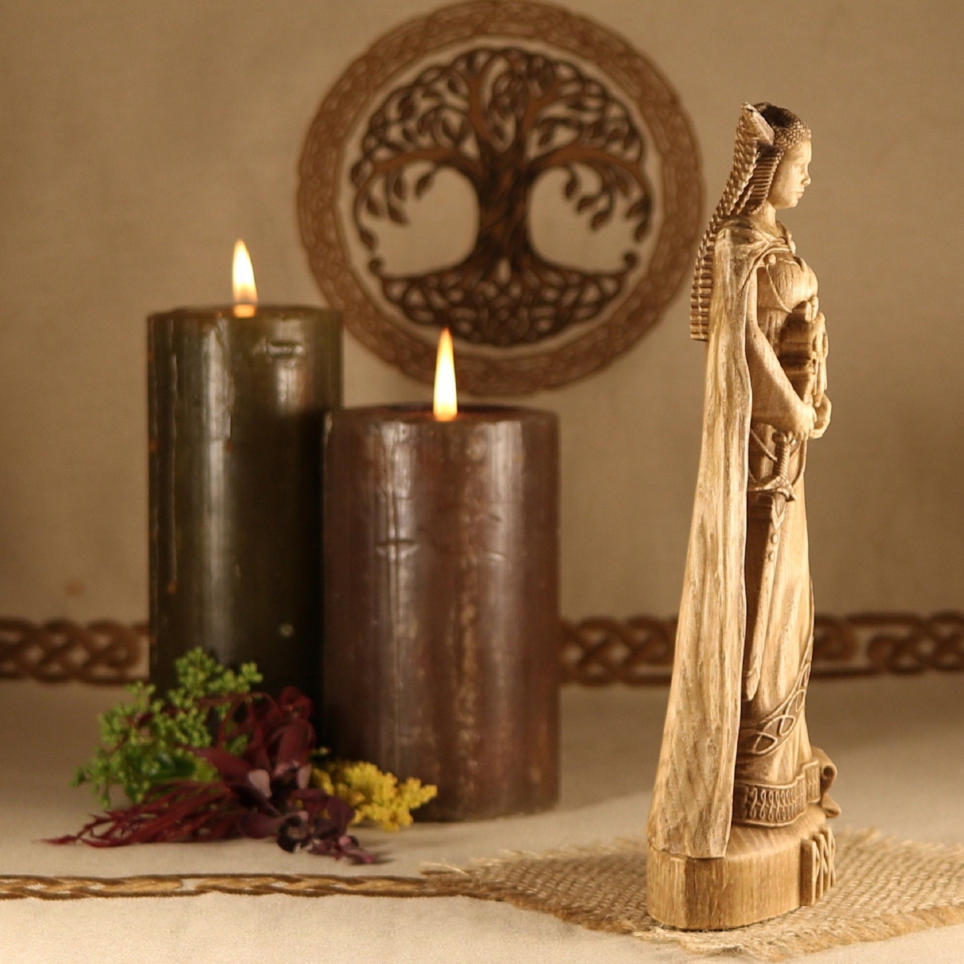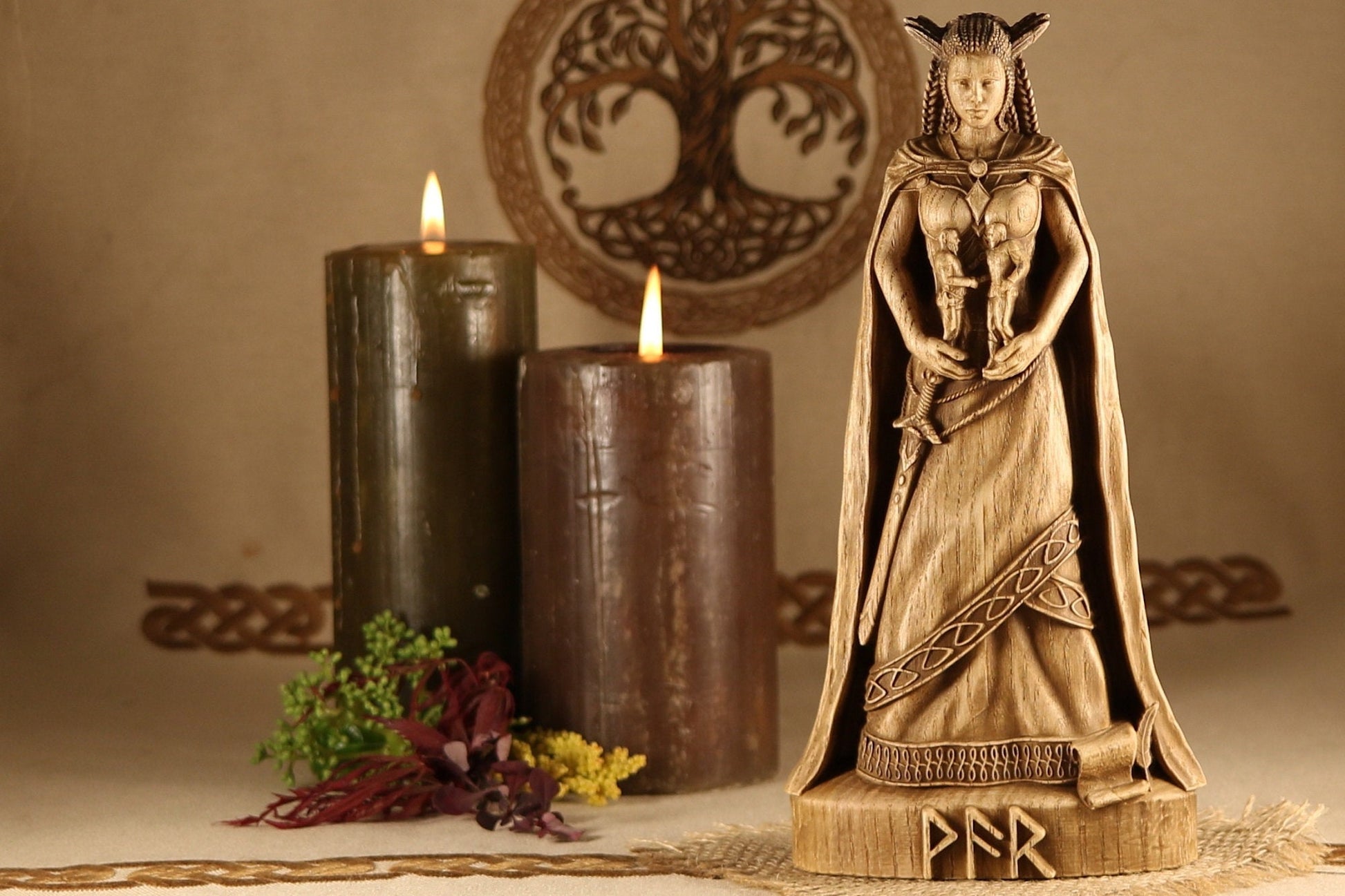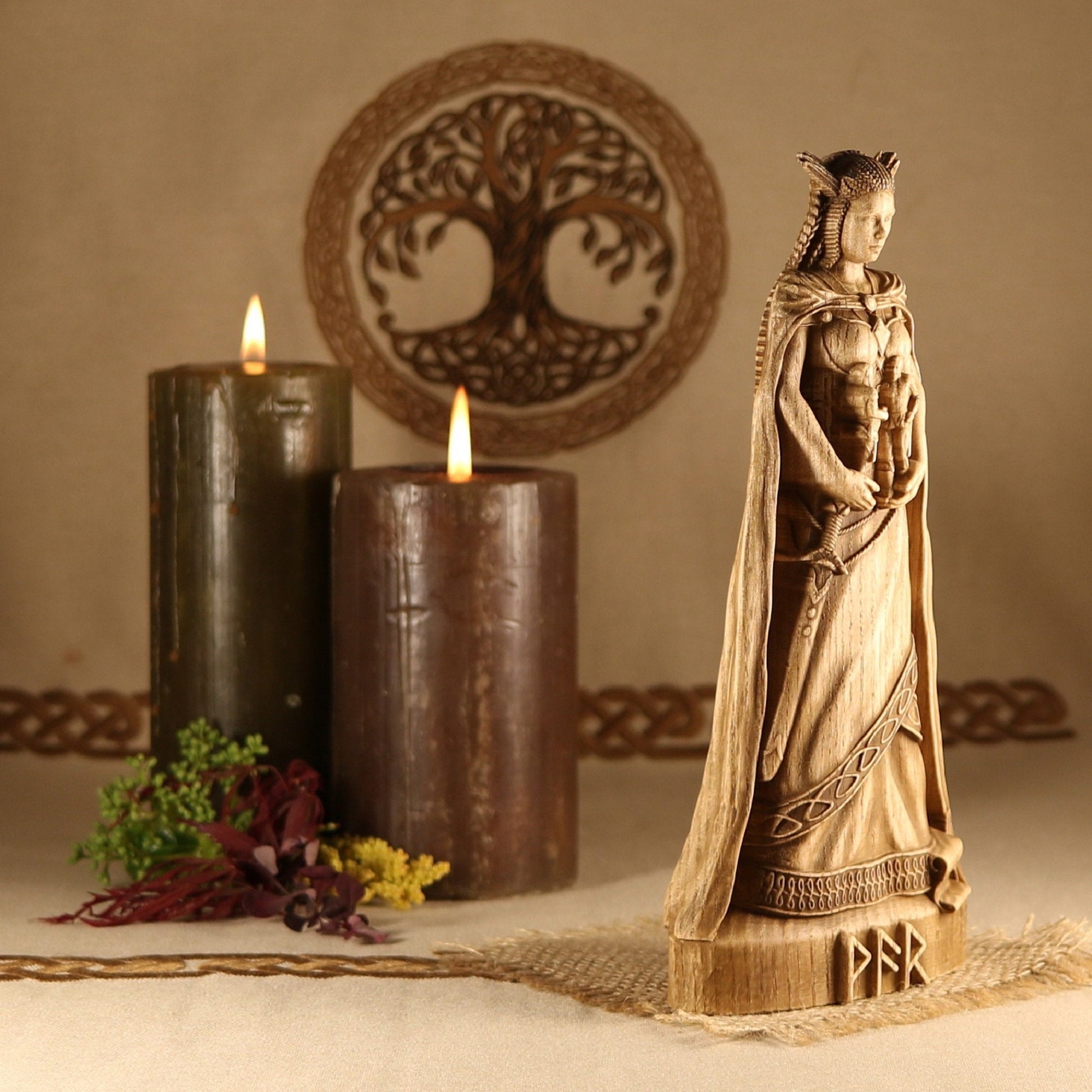 Var, in Scandinavian mythology the goddess of fidelity, truth, and love vows, handmade wooden statue, pagan goddess statue wood carved from ecological material for norse pagan decor.