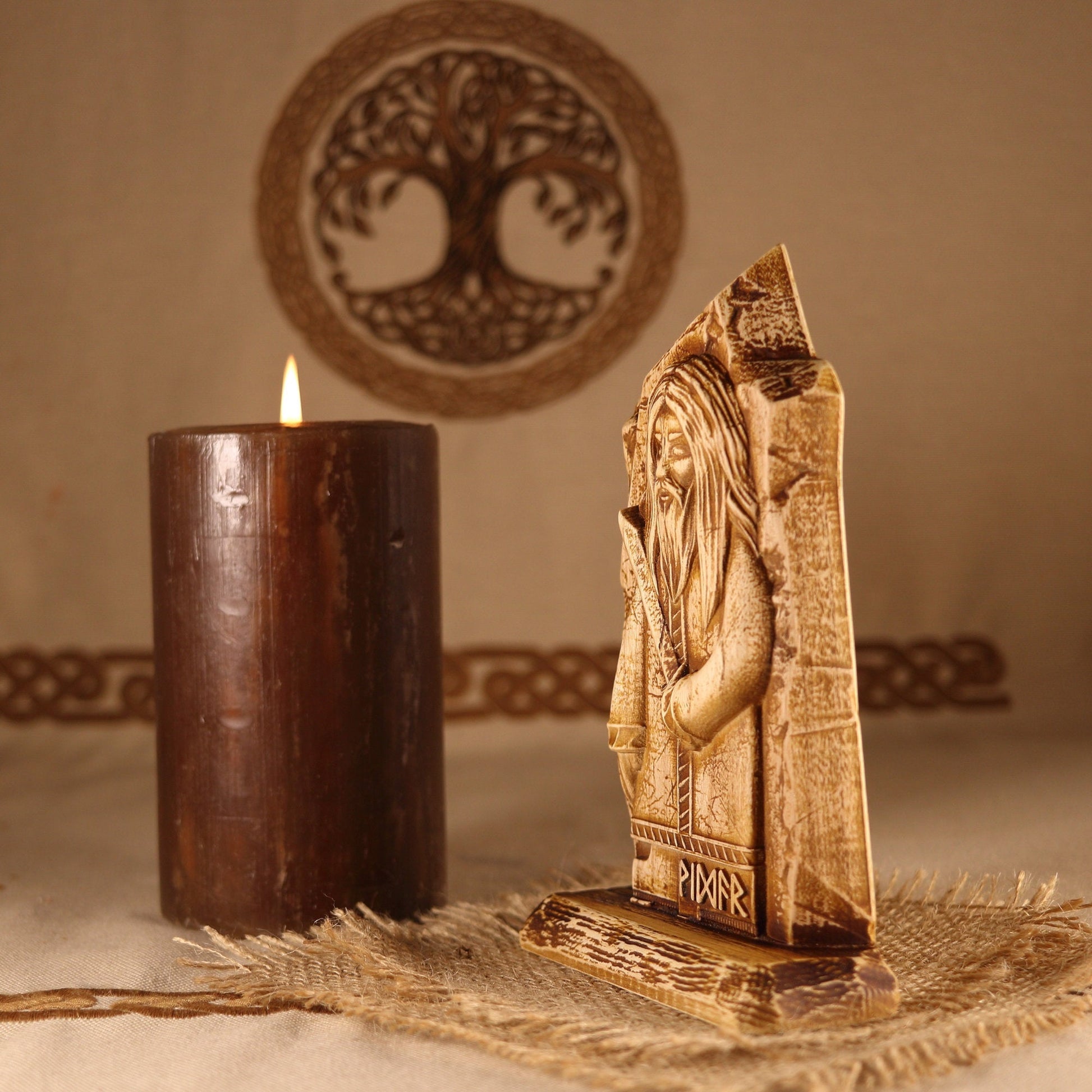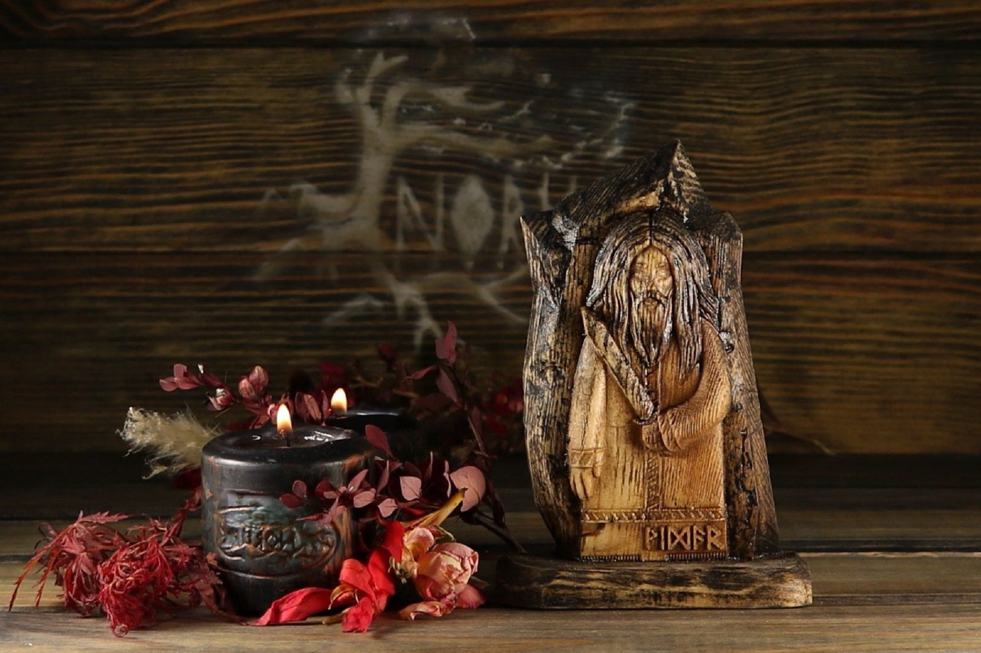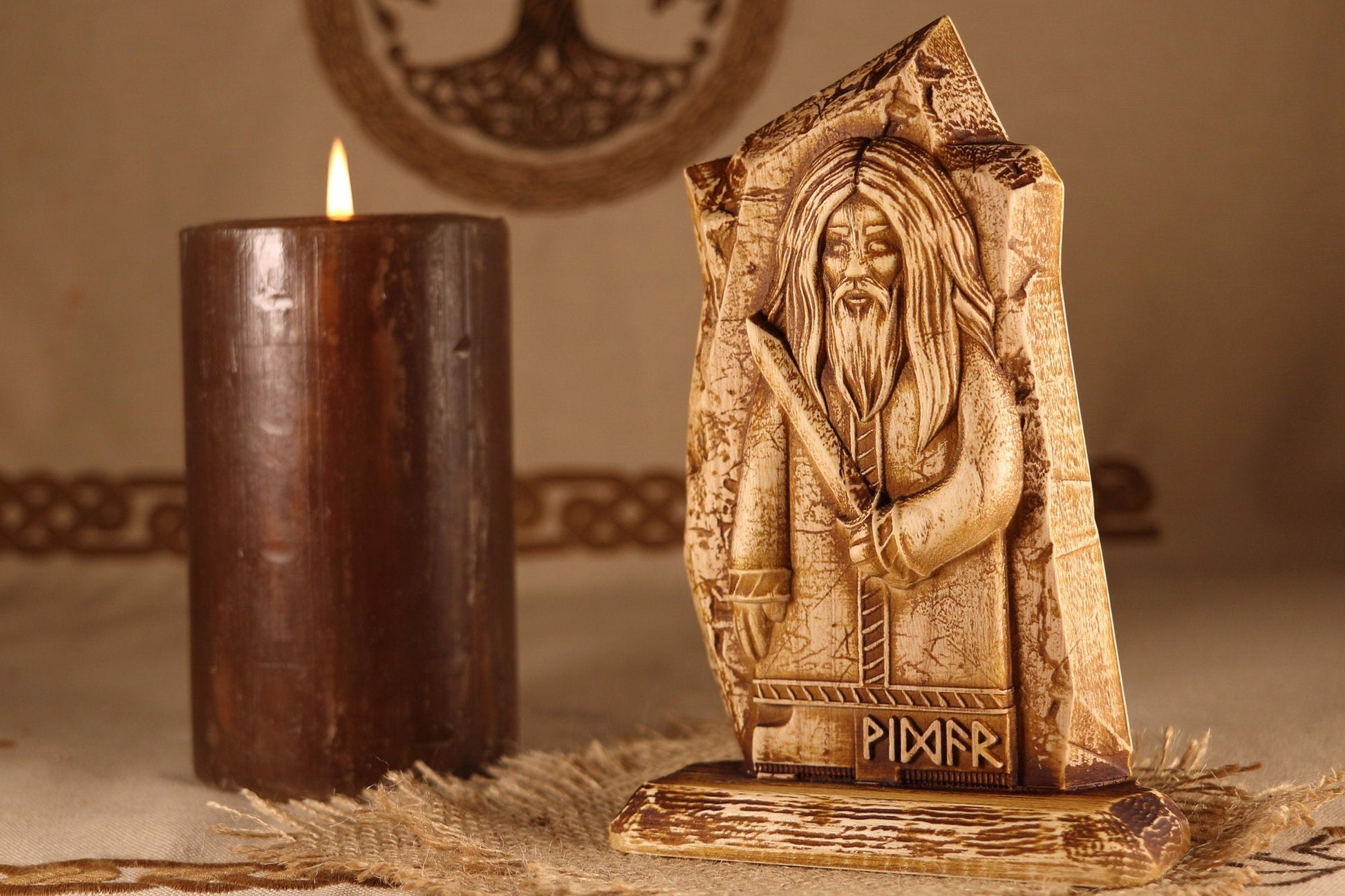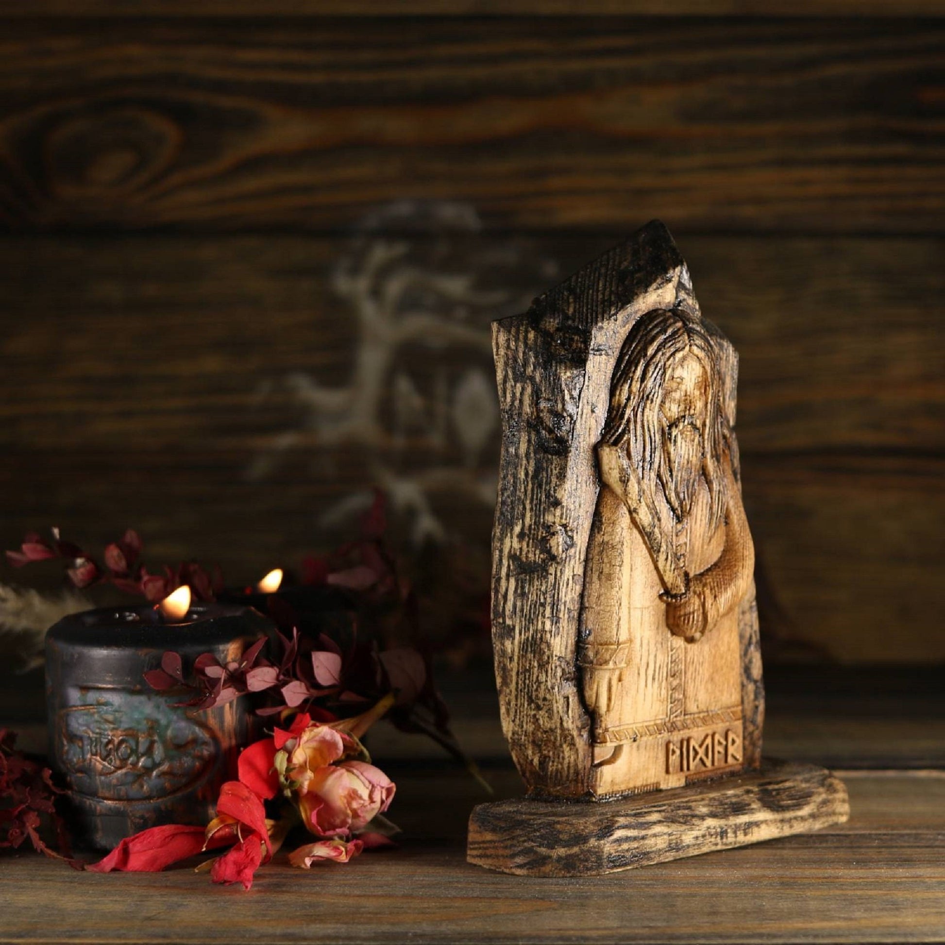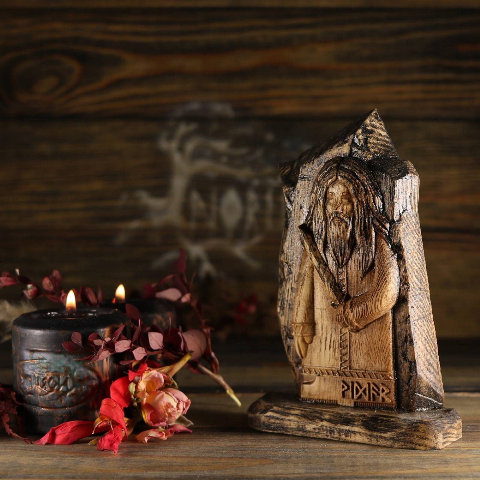 Vidar, wooden statue, Norse pagan mini altar decor, wood carving
