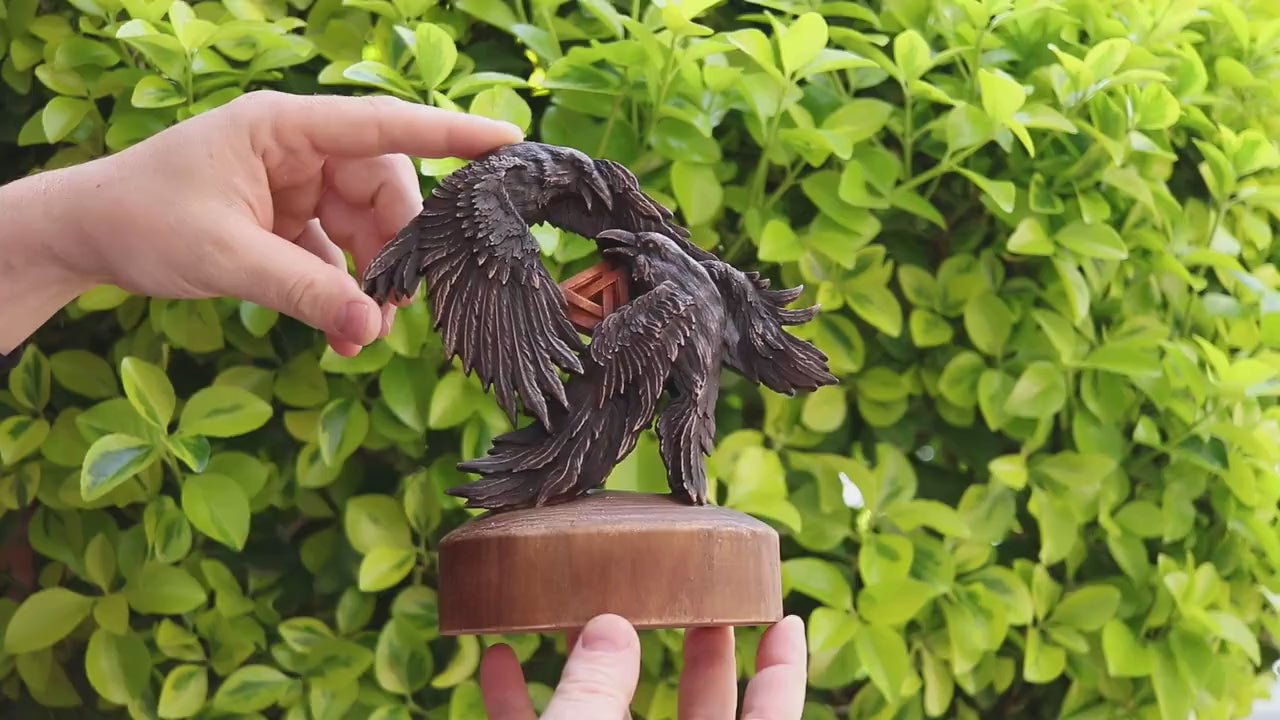 Wooden statue Huginn and Muninn - is an embodiment of ancient Scandinavian mythology and symbolism that brings touches of mystery and wisdom to your space. This statue embodies two ravens that play a significant role in understanding and conveying information in the world of Scandinavian mythology.