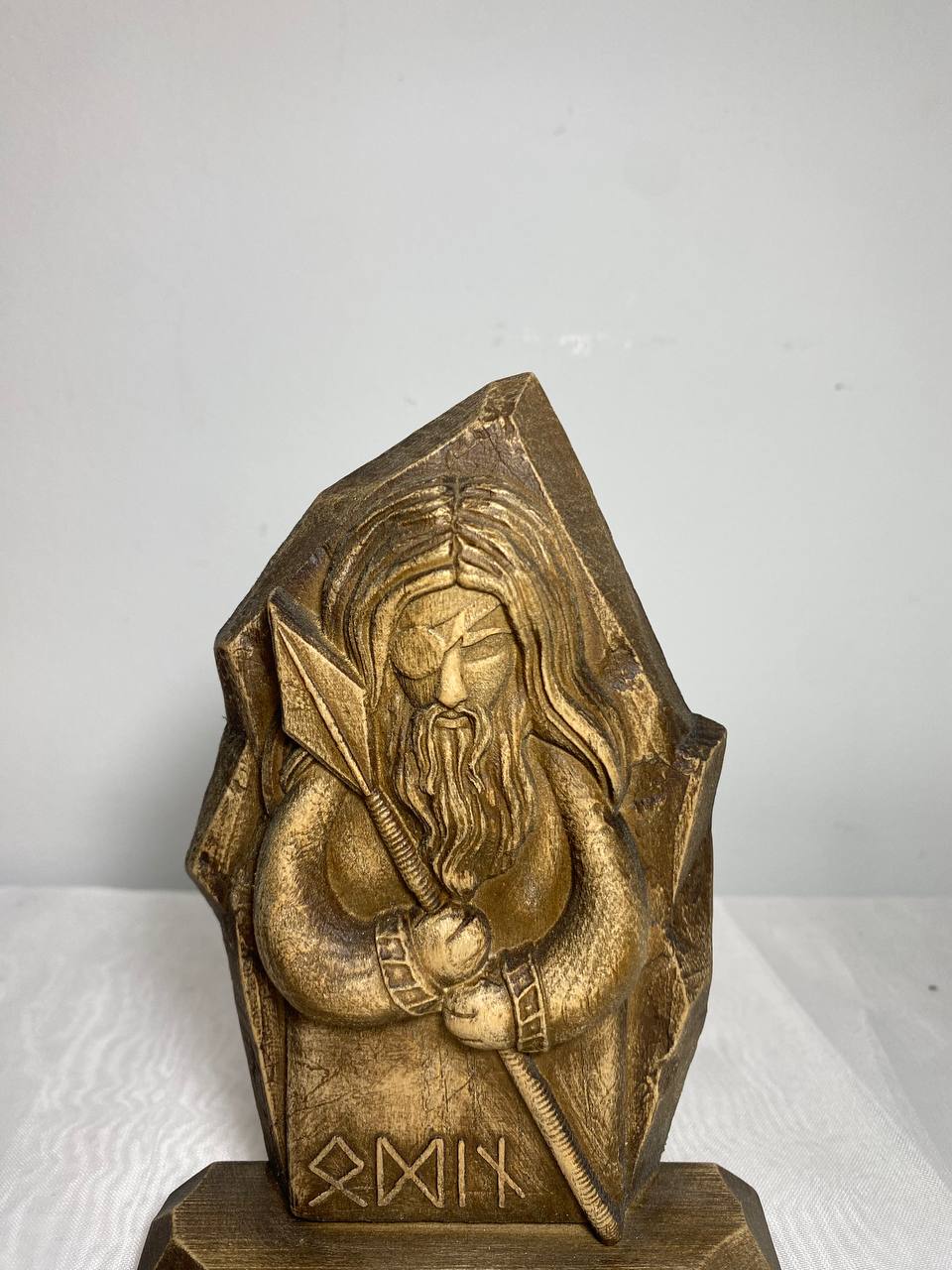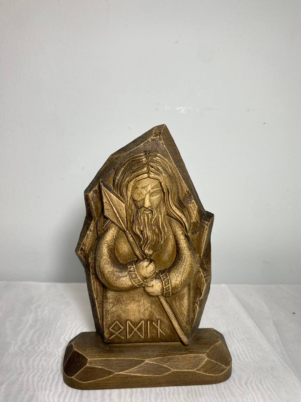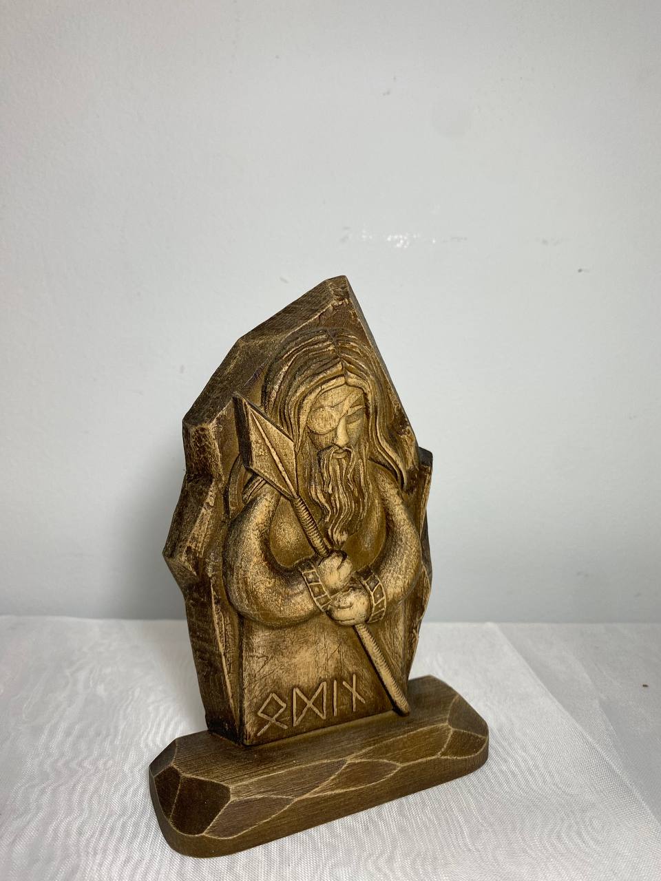 Odin, the all-father, is one of the most respected gods in Norse mythology. He is the god of wisdom, war, and death. And he is also incredibly handsome. Just look at this wood carving of him! Crafted by hand from ecological materials, this mini statue is perfect for any viking or pagan decor. The varnish coating protects the wood and ensures that this statue will last for many years to come. So if you're looking for a thoughtful and unique gift, or simply want to treat yourself to a beautiful work of art, Odin is your man.
