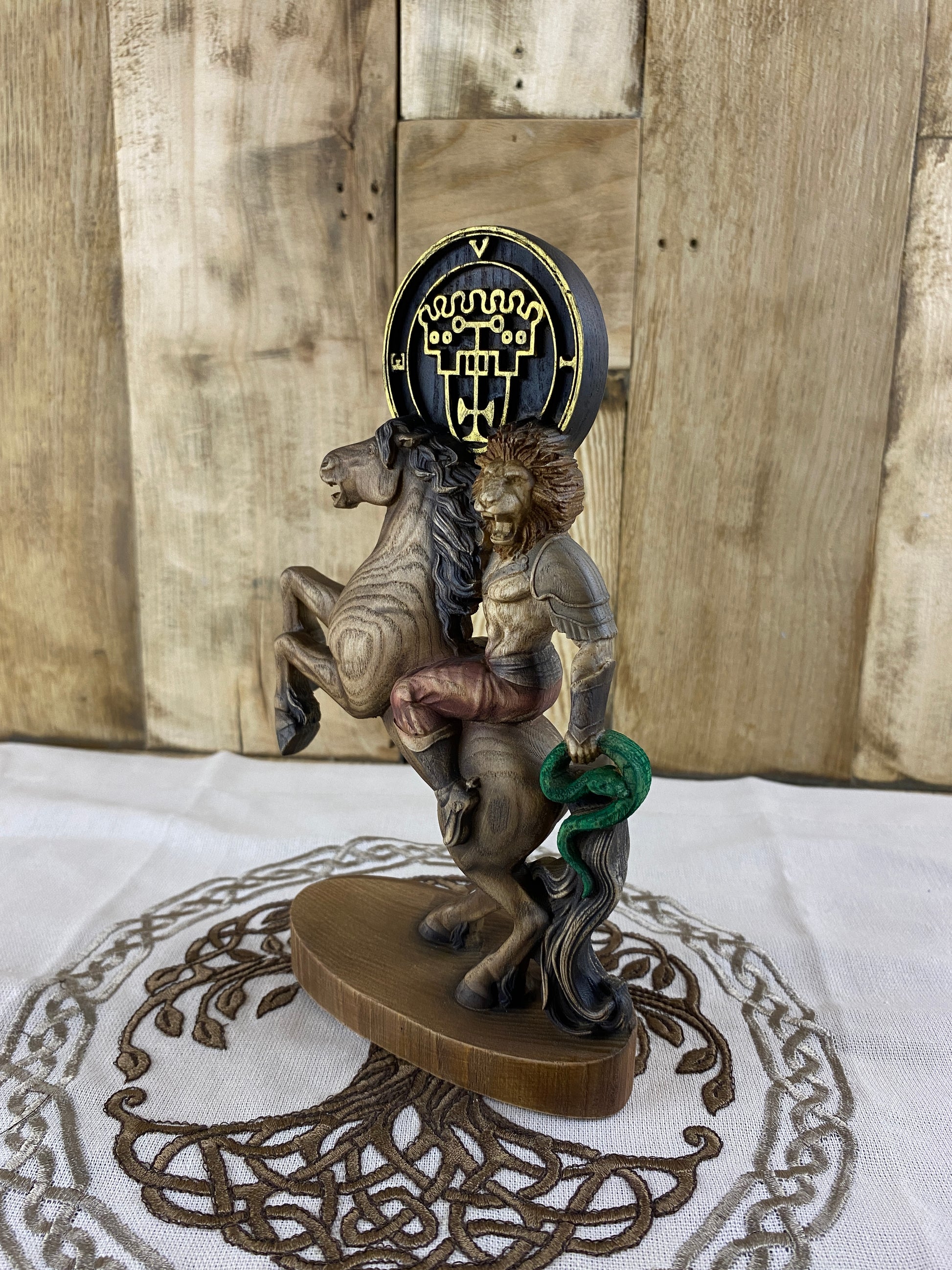 Explore the realm of mysticism with this hand-carved wooden statue of King Vine, a powerful figure from the Ars Goetia. Crafted from high-quality ash wood, this piece serves as a meaningful decorative object for those interested in esoteric traditions, demonology, and ancient symbolism.