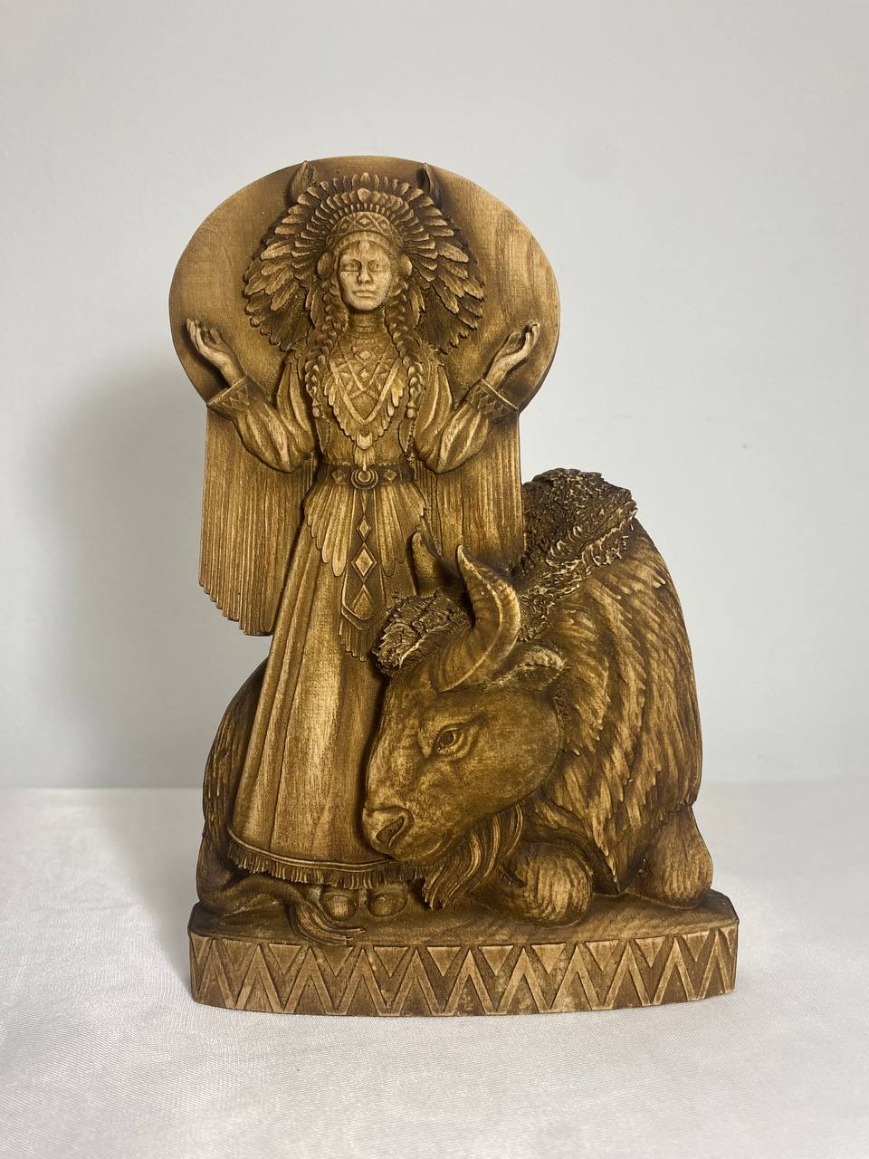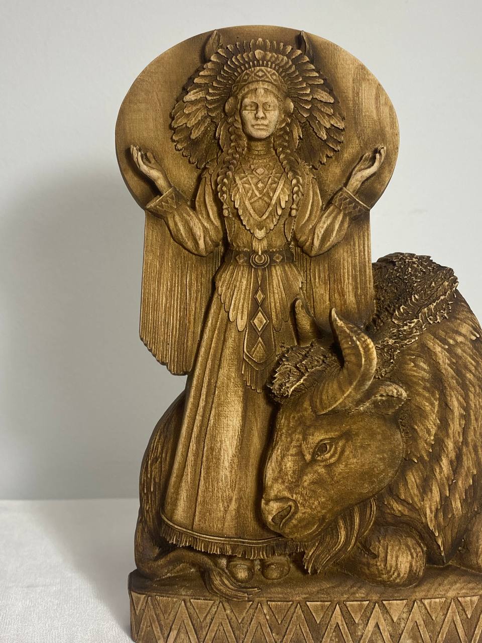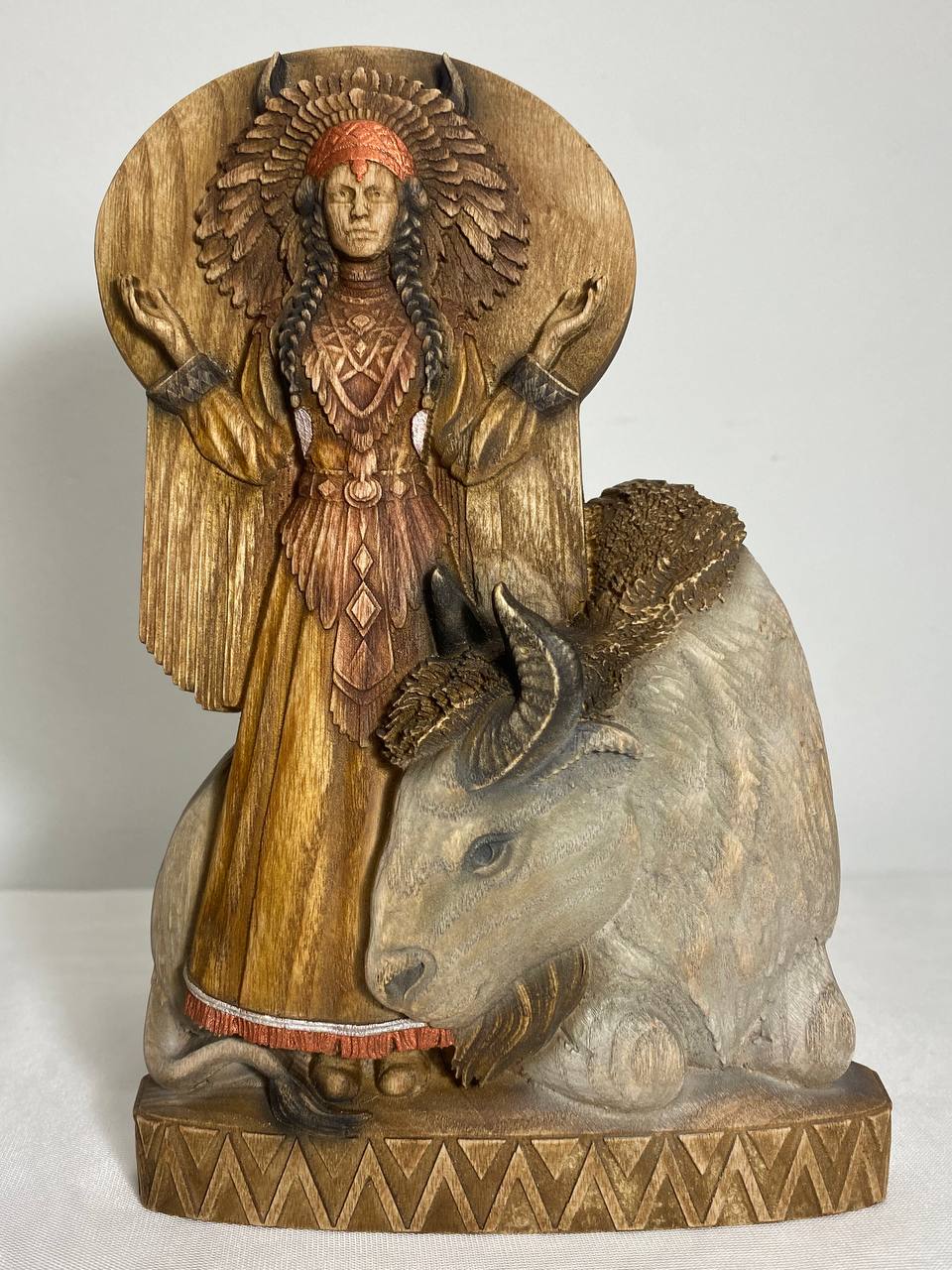 White buffalo maiden White buffalo statue White buffalo women Native american statue Buffalo women art Wood carved bison Buffalo wood décor