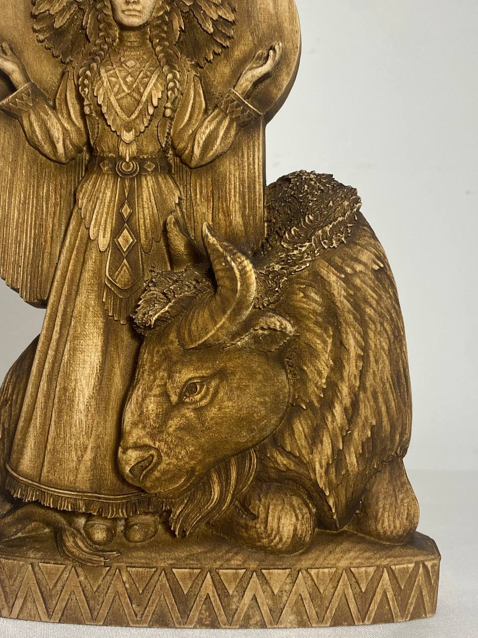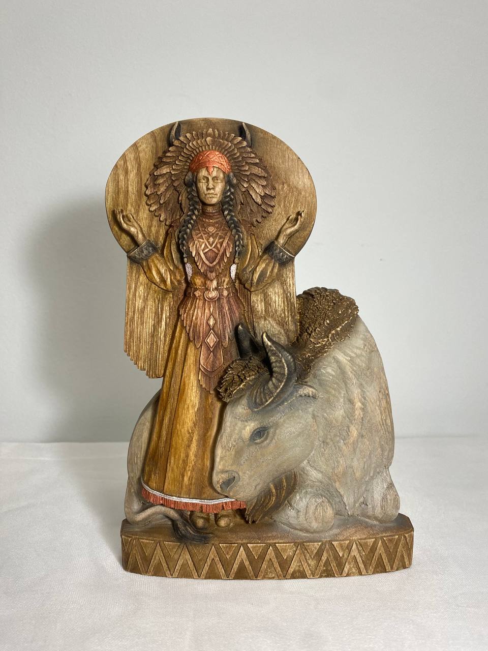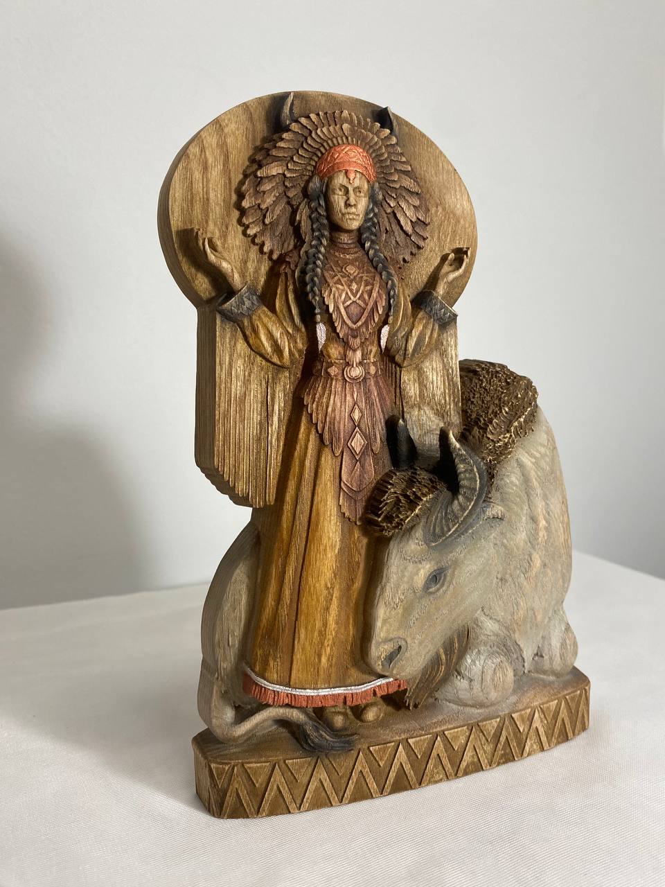 White buffalo maiden White buffalo statue White buffalo women Native american statue Buffalo women art Wood carved bison Buffalo wood décor
