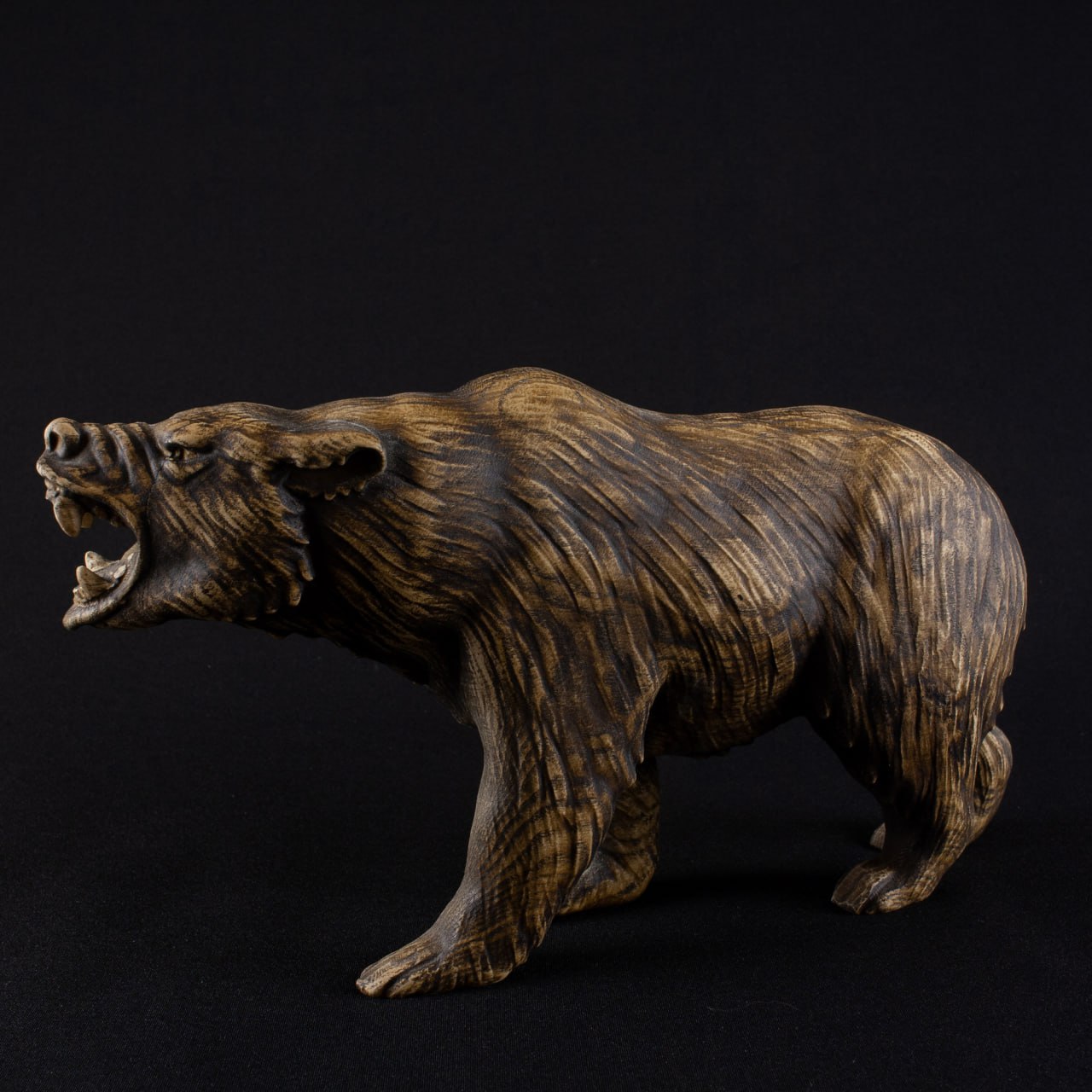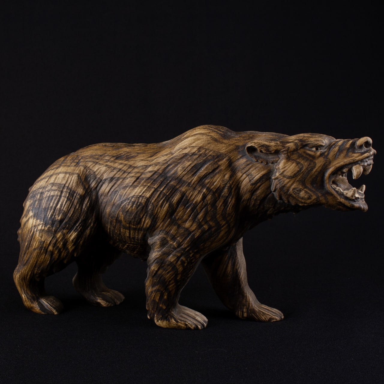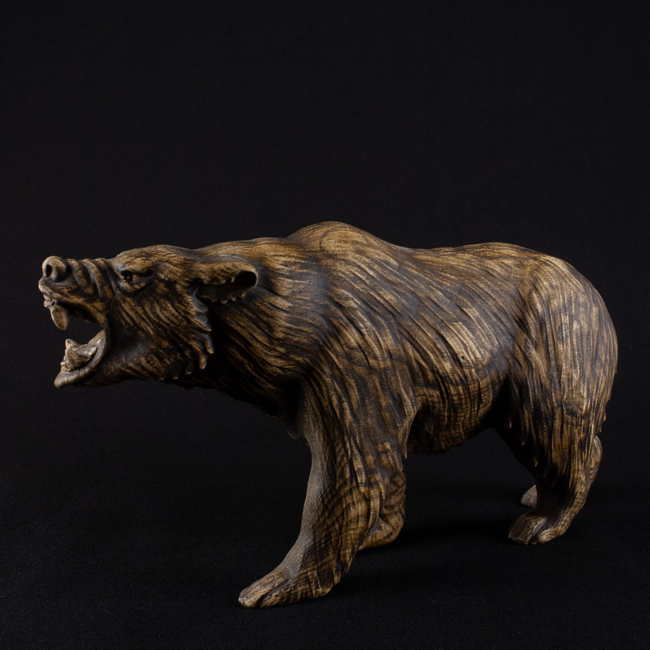 This bear sculpture accurately captures the unique features of the grizzly bear with great attention to detail. The carving meticulously portrays every characteristic, from the powerful paws to the luxurious fur, and the imposing physical structure. Each detail of the sculpture exudes realism that takes your breath away and adds a special charm to this work of art.