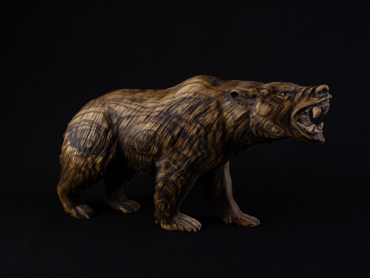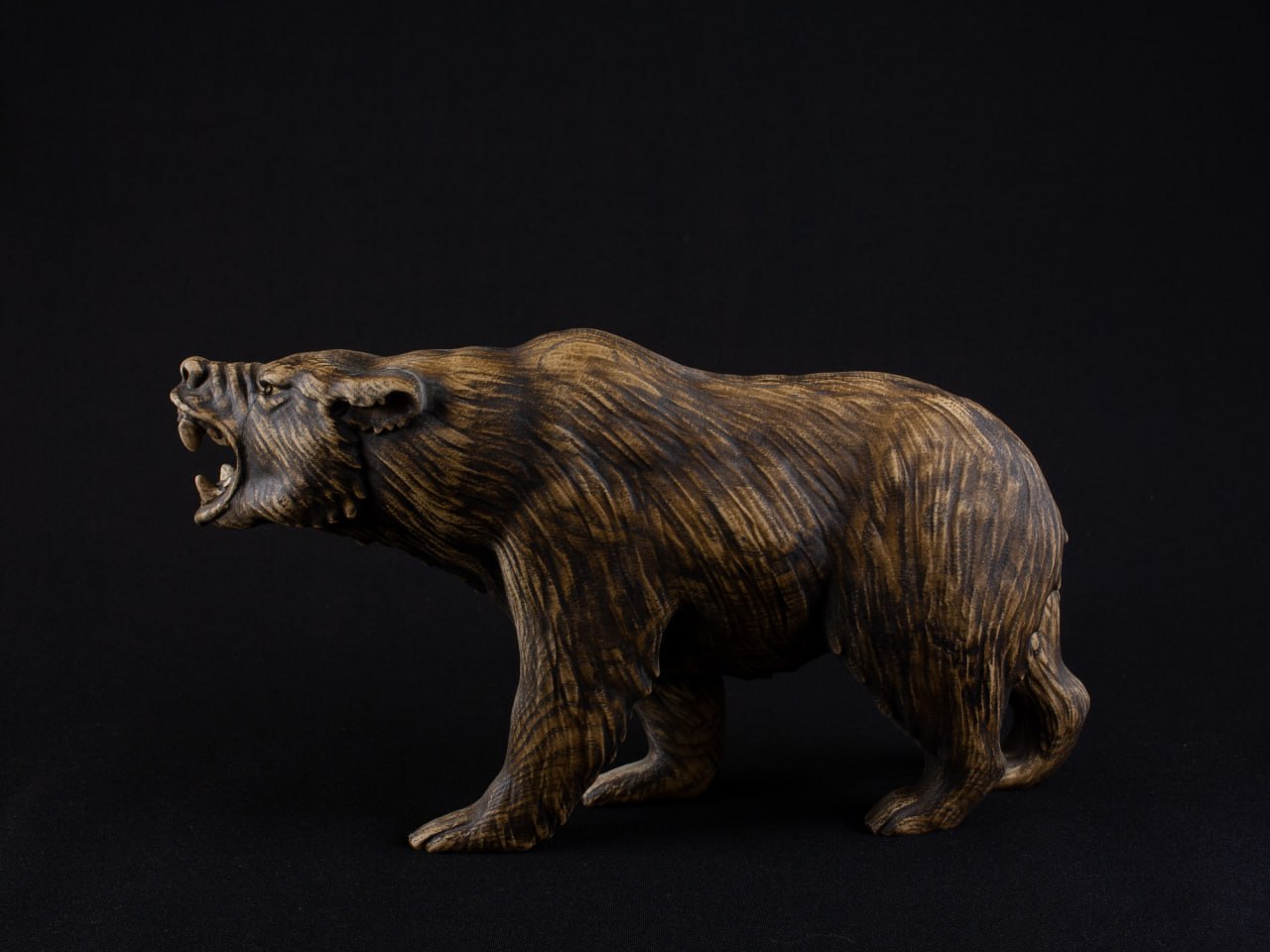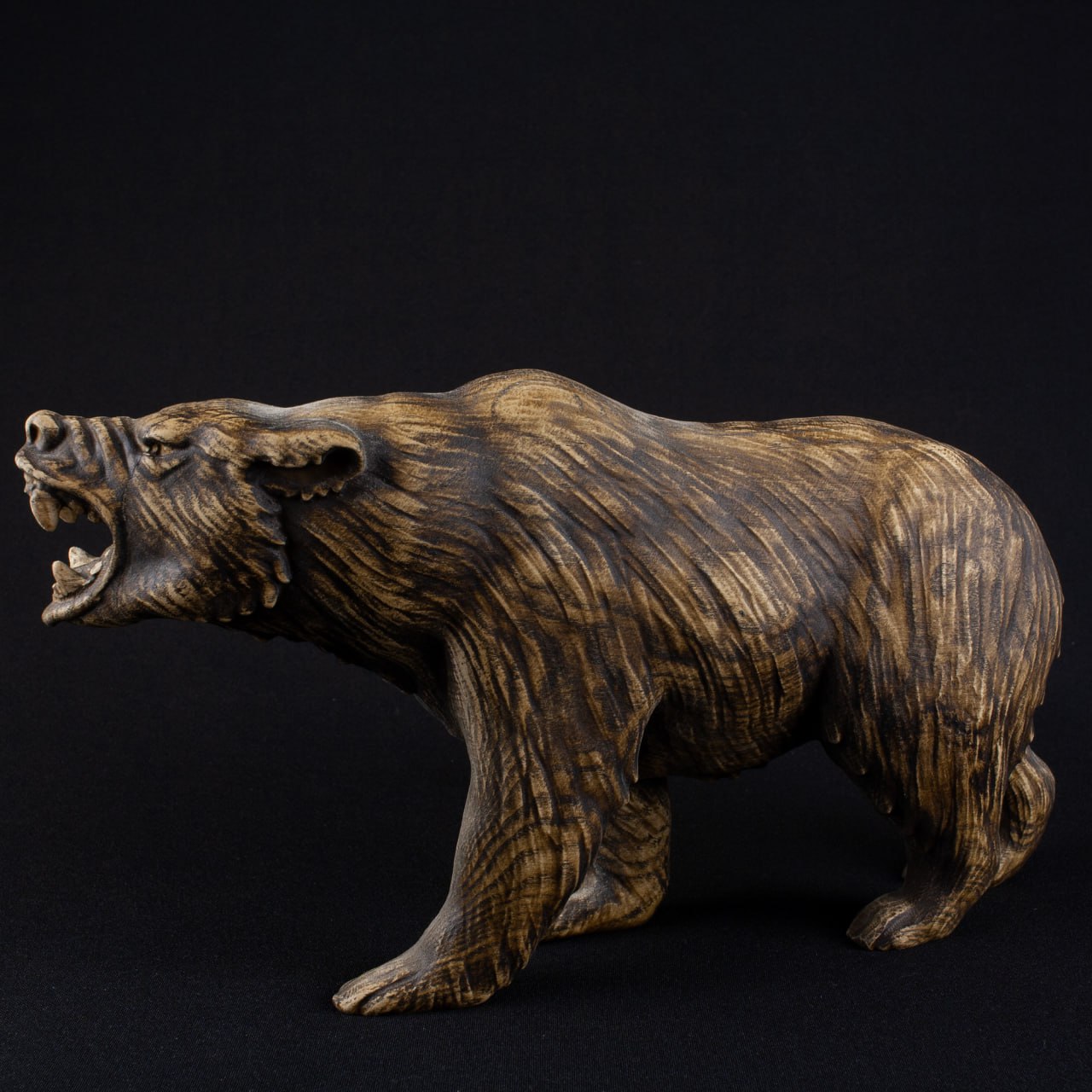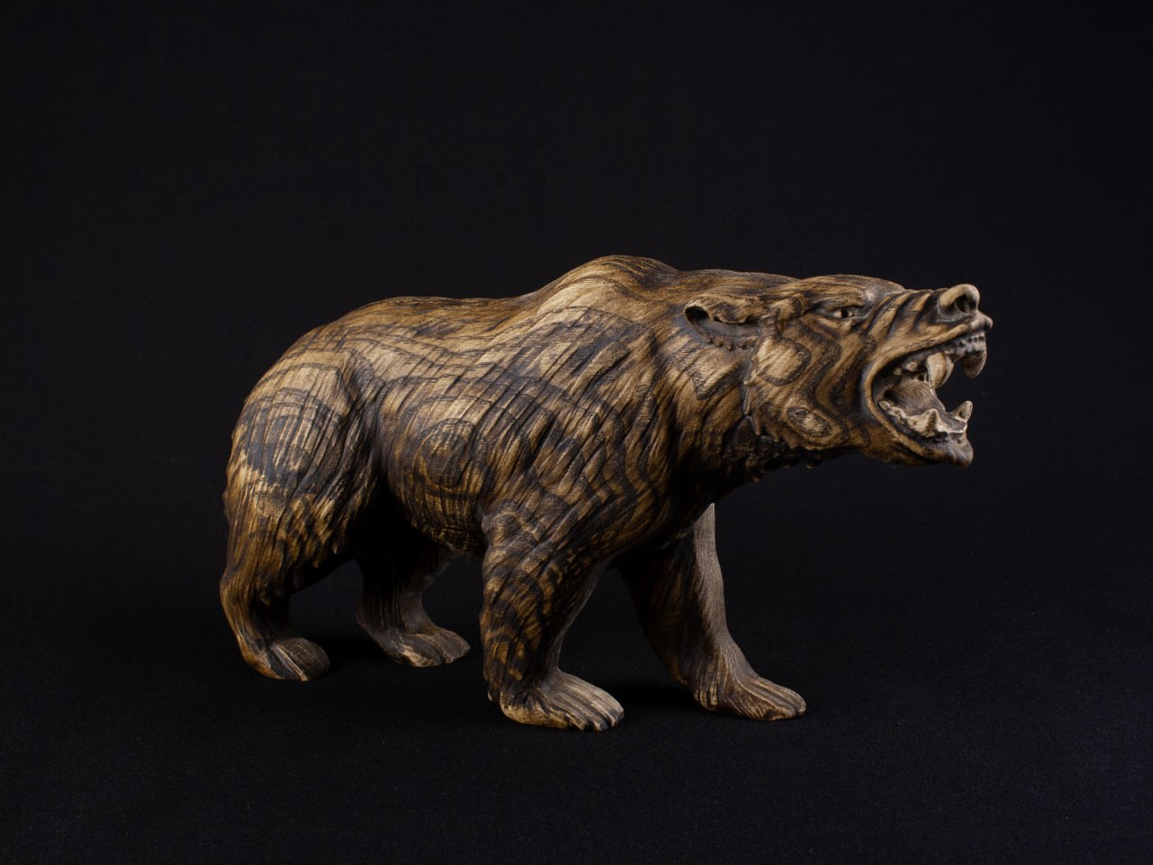 This bear sculpture accurately captures the unique features of the grizzly bear with great attention to detail. The carving meticulously portrays every characteristic, from the powerful paws to the luxurious fur, and the imposing physical structure. Each detail of the sculpture exudes realism that takes your breath away and adds a special charm to this work of art.