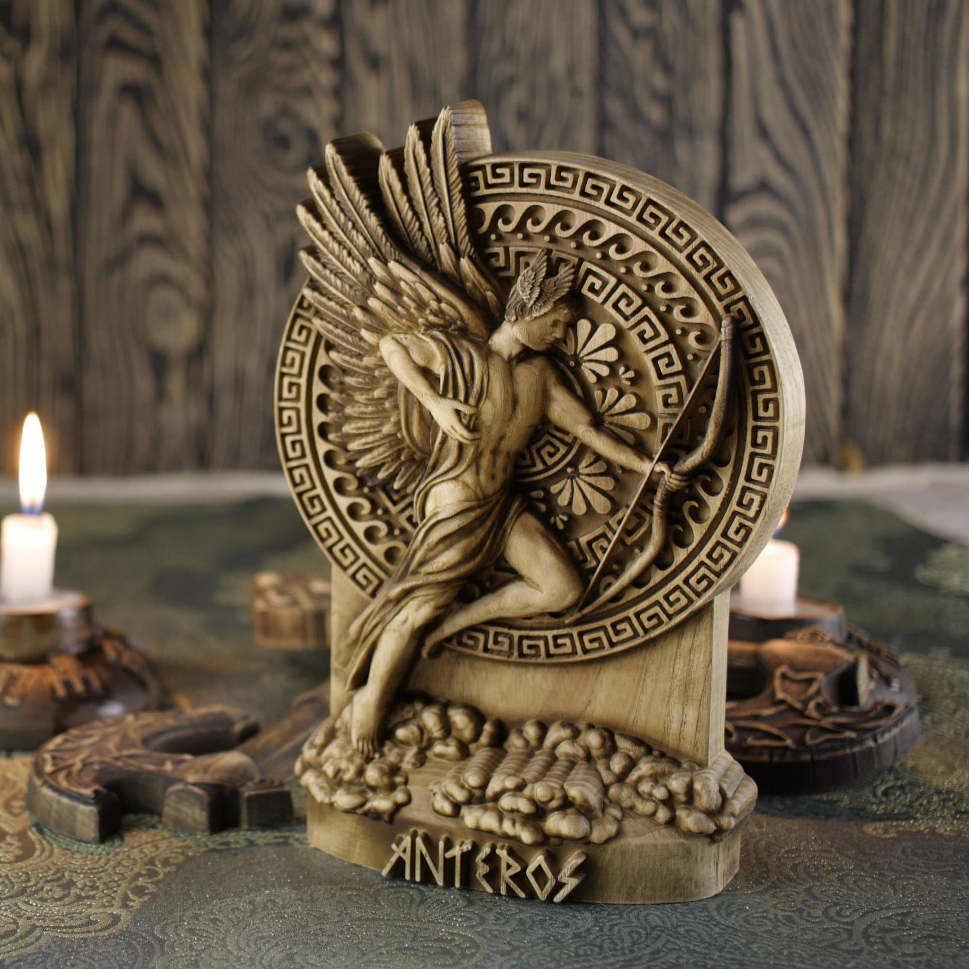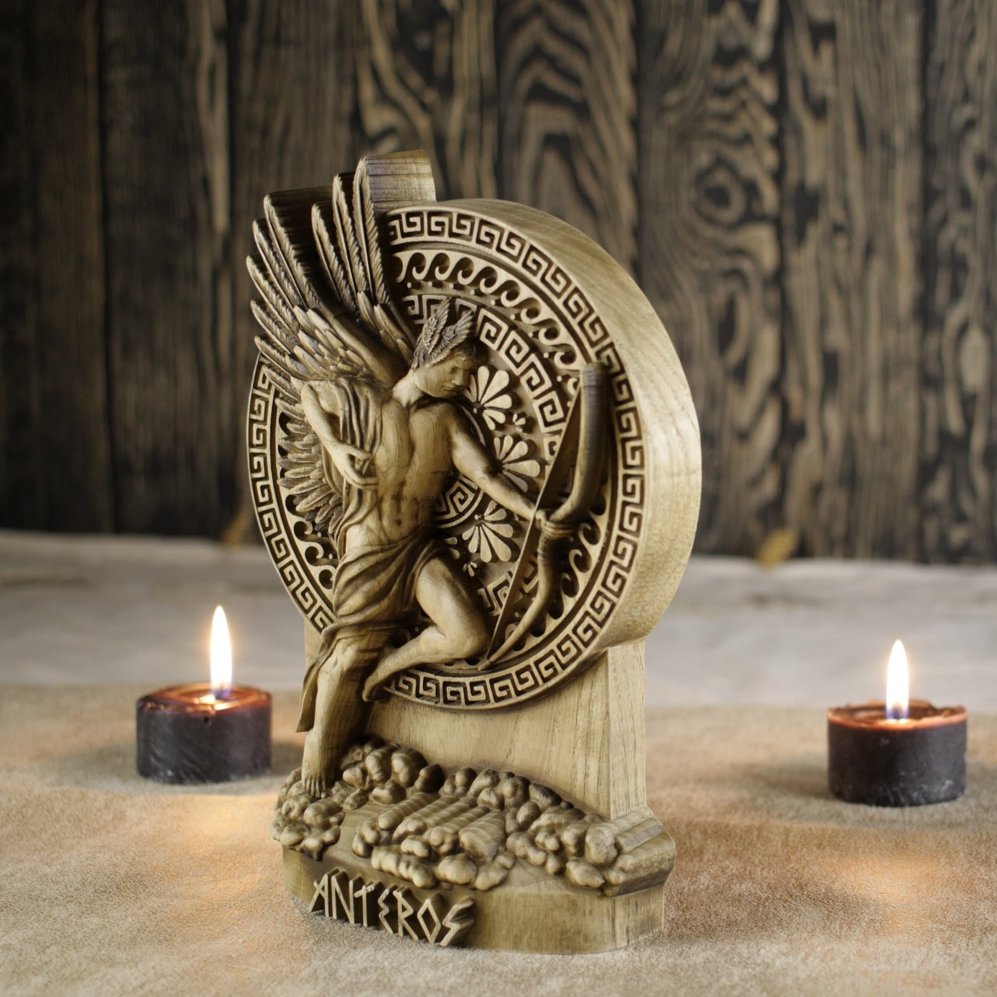 Looking for a unique and special gift? Anteros, Greek God, Wooden statue is a perfect choice! This one-of-a-kind statue is made from ecological material and features a varnish coating. Anteros is the god of mutual love and this statue makes a great addition to any home or office. Give the gift of love to Anteros, Greek God, a Wooden statue.