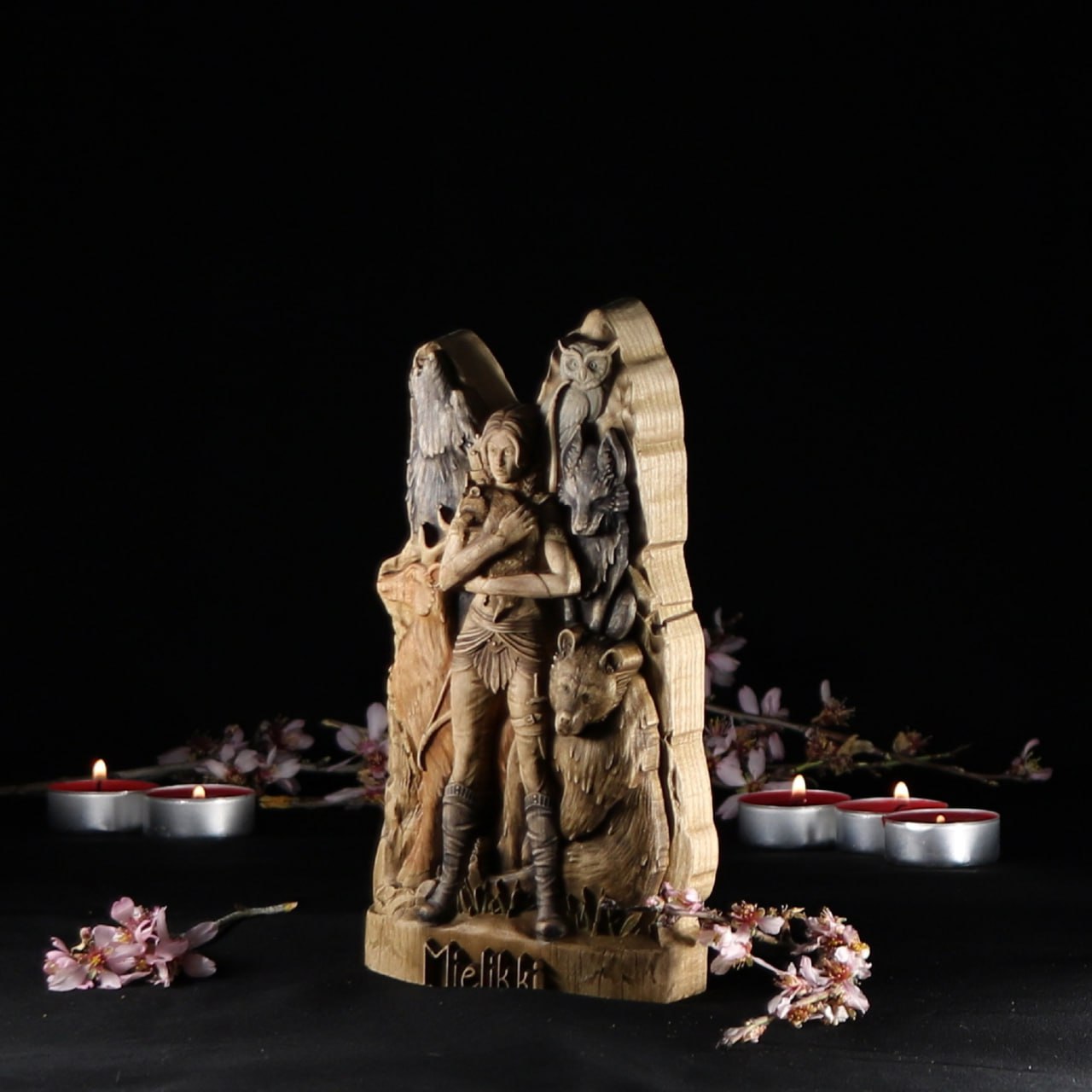 This statue is perfect for those who love nature and want to bring a piece of the forest into their home or office. It would make an excellent addition to any room or outdoor space, providing a sense of calm and harmony. This Wooden Goddess of Forest Mielikki Statue is an ideal gift for nature lovers or anyone who appreciates the beauty of handmade, eco-friendly artwork.