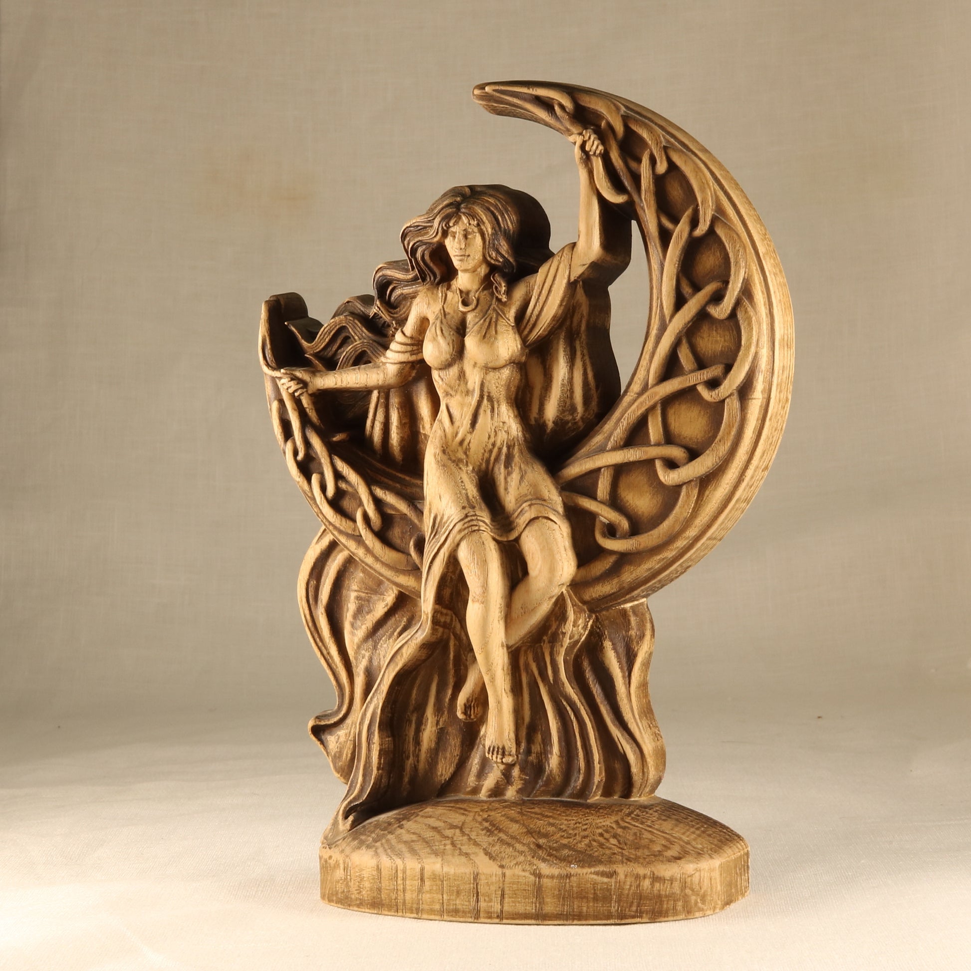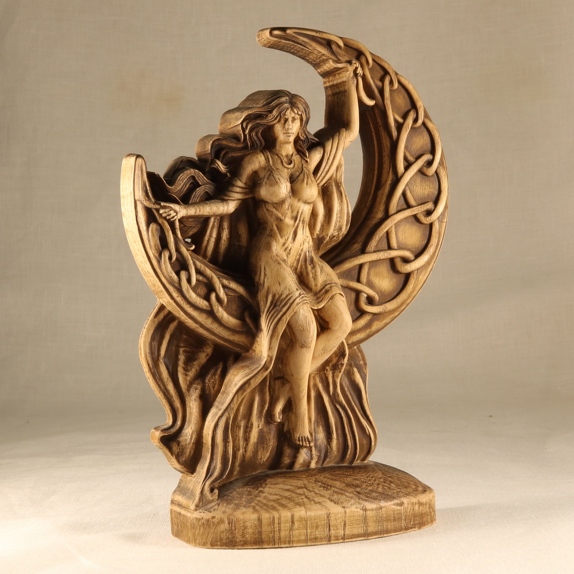 Introducing the Moon, Triple Moon Goddess Statue! This beautiful statue is handmade from wood and makes a stunning addition to any altar or home decoration. The Triple Moon Goddess is a powerful symbol of the Celtic goddess, Moon. She is the perfect deity to call upon for protection, abundance, and fertility. This wonderful statue is a must-have for any Wicca altar or pagan collection.