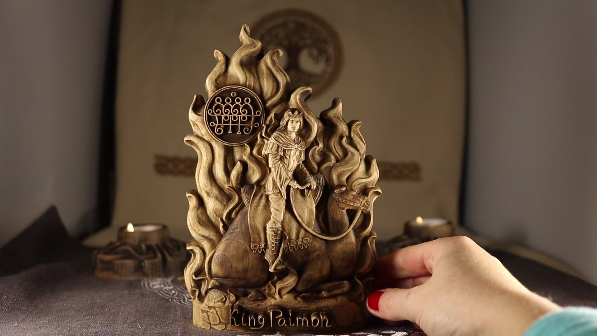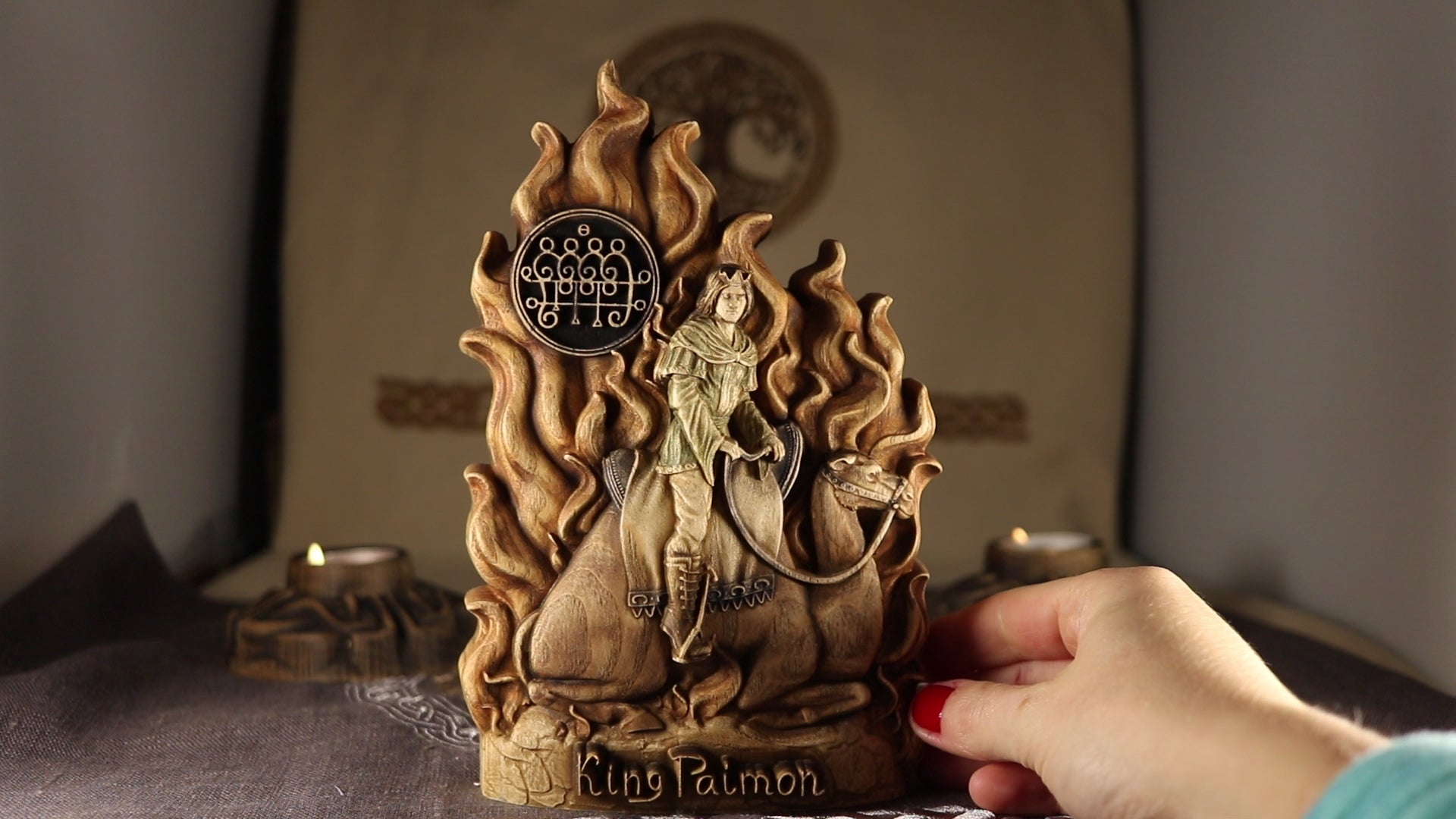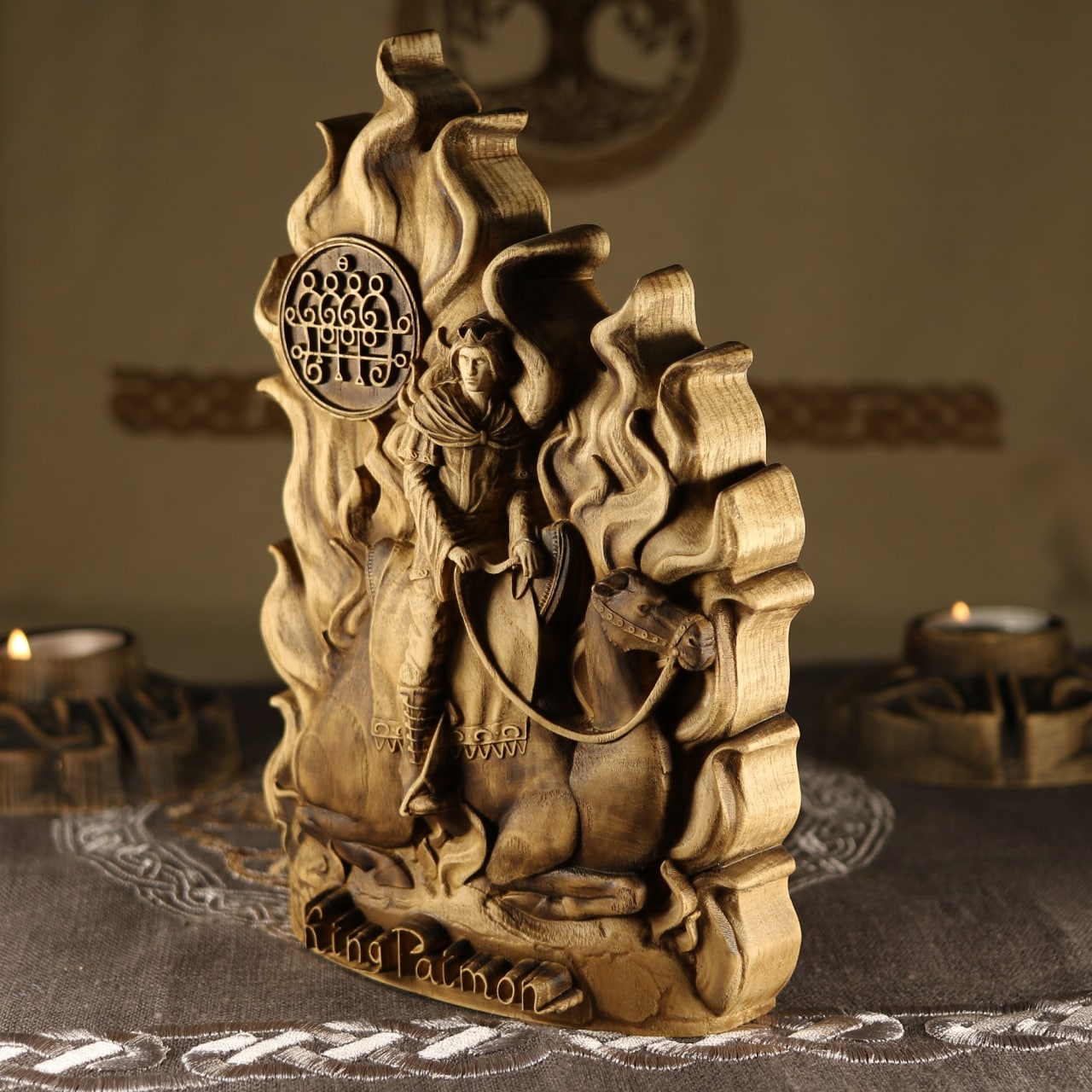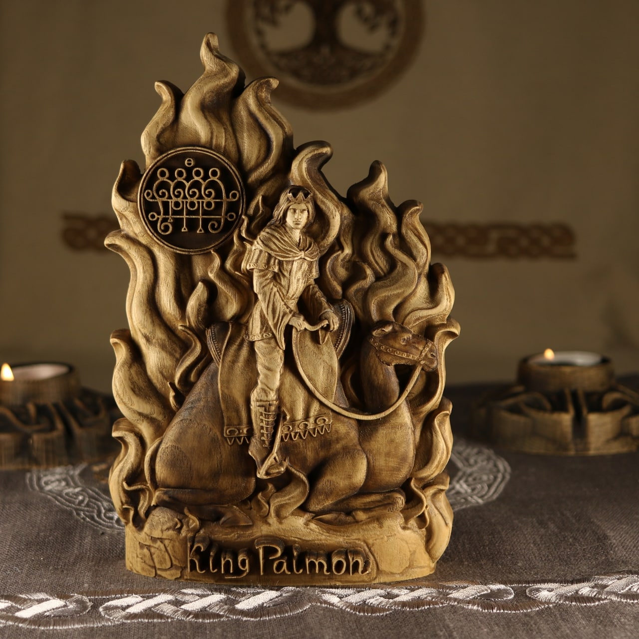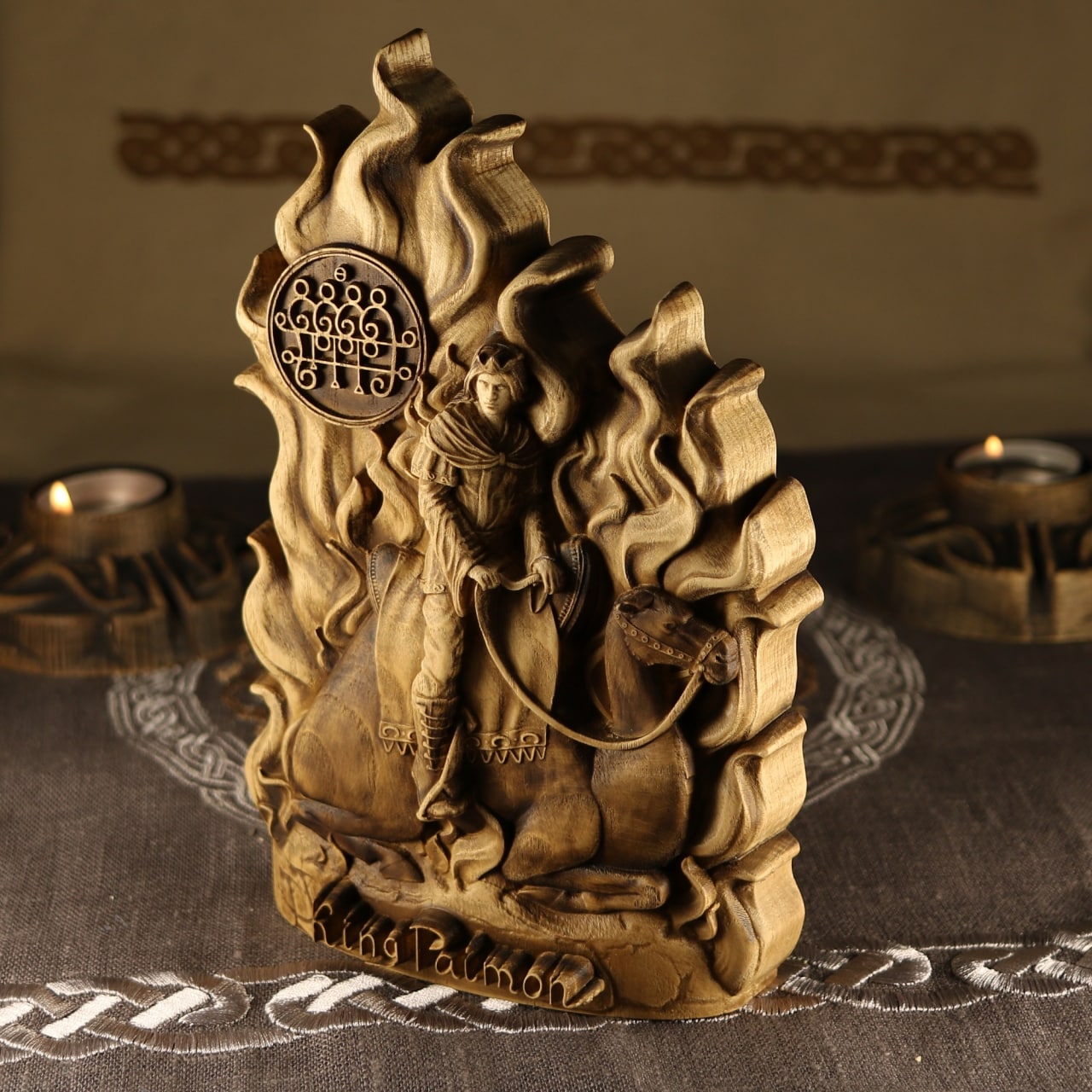 Wooden King Paimon Statue - Lucifer Altar, Occult Sculpture