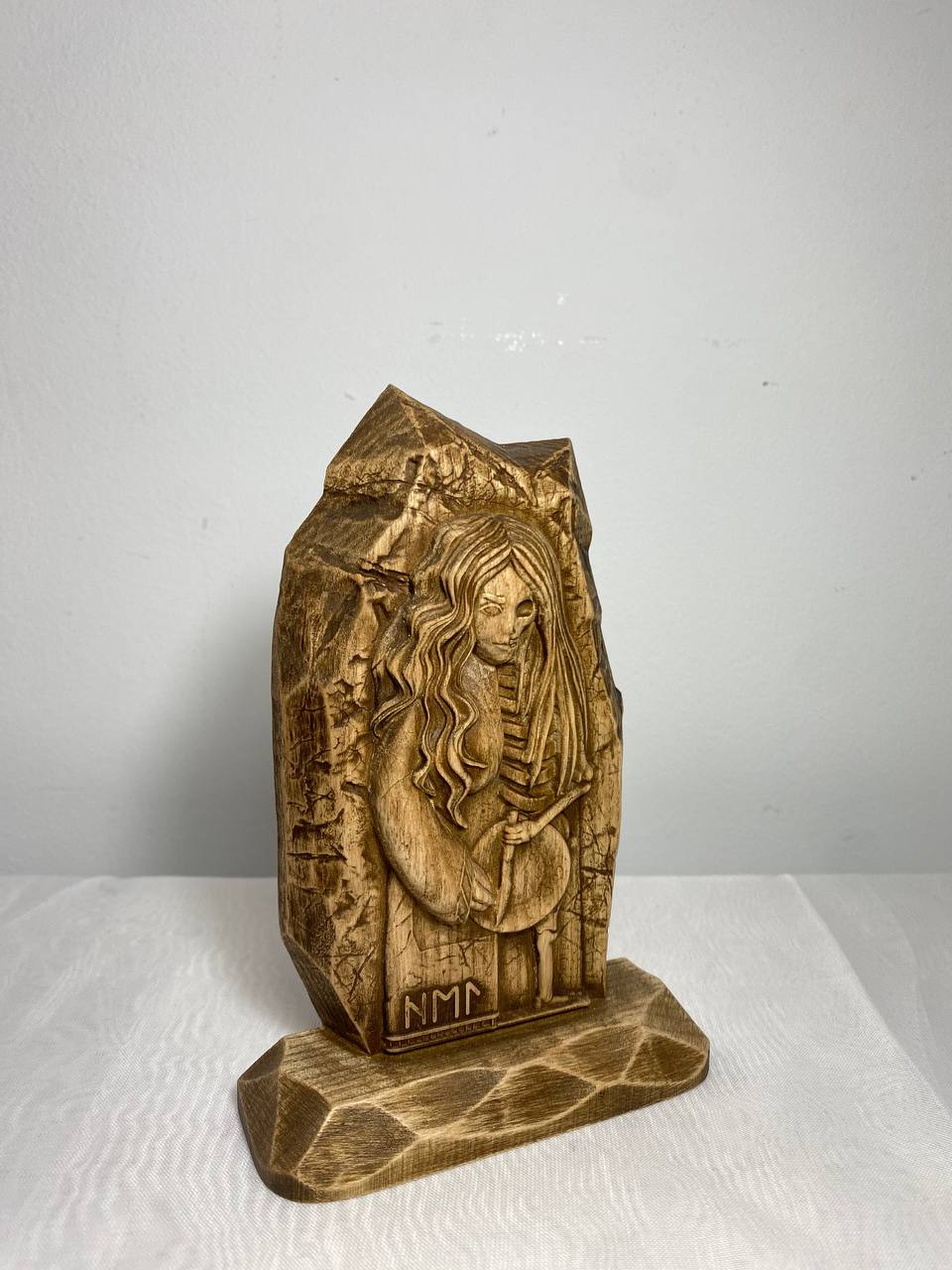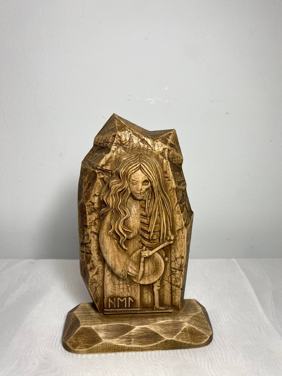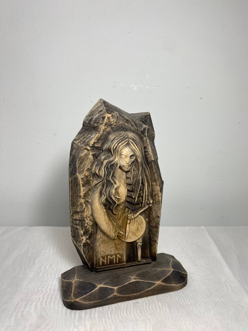 This Goddess Hel statue is a beautiful and unique piece that is perfect for anyone who wants to add a touch of the divine to their home. The statue is handmade from ecological materials and features a stunning carving of the goddess Hel, mistress of the dead. The wood has been given a varnish finish to protect it from the elements and to ensure that it will last for many years to come.